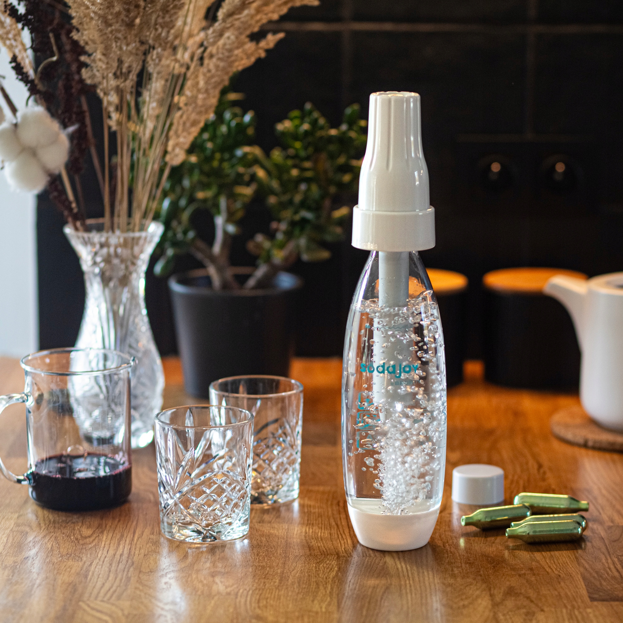 Знаете ли вы, что вы можете приготовить освежающий напиток Prosecco всего за несколько минут? Используйте наш насыщенный Sodajo Satupitator и ваш любимый готовый белый или розовый вин для этого. Один, два - и это готово. Здоровье!
