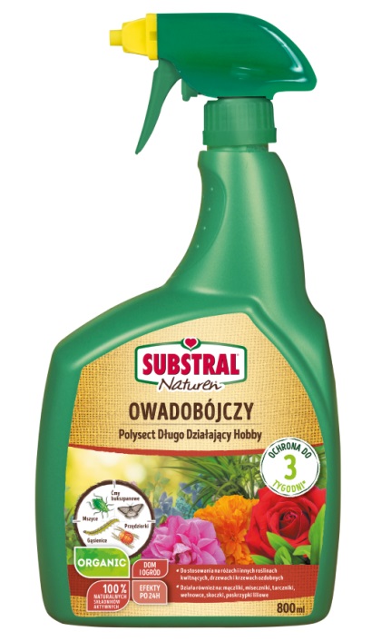 Полисект Спрей Натурен – инсектицид в форме жидкости прямого применения (ЖП), предназначенный для защиты декоративных растений. Препарат эффективен против распространенных и вредоносных вредителей при любительском выращивании декоративных растений в приусадебных и приусадебных участках, а также насекомых, в том числе тли, листового клеща, белокрылки, чашечки, щитовки, мучнистого червеца, цикадки, гусеницы бабочки и сиреневого слепня. Поверхностно-действующее средство, содержащее рапсовое масло и природные пиретрины. Масло канолы действует физически, создавая тонкий слой масла на теле вредителя, не позволяя ему дышать. Пиретрины – экстракт цветков растений рода Хризантема, обладающий высокой инсектицидной активностью, обеспечивающий быструю и эффективную защиту от вредителей. Первые эффекты средства заметны уже через 24 часа после применения. *Средство защищает растения до 3 недель (при двукратном применении).