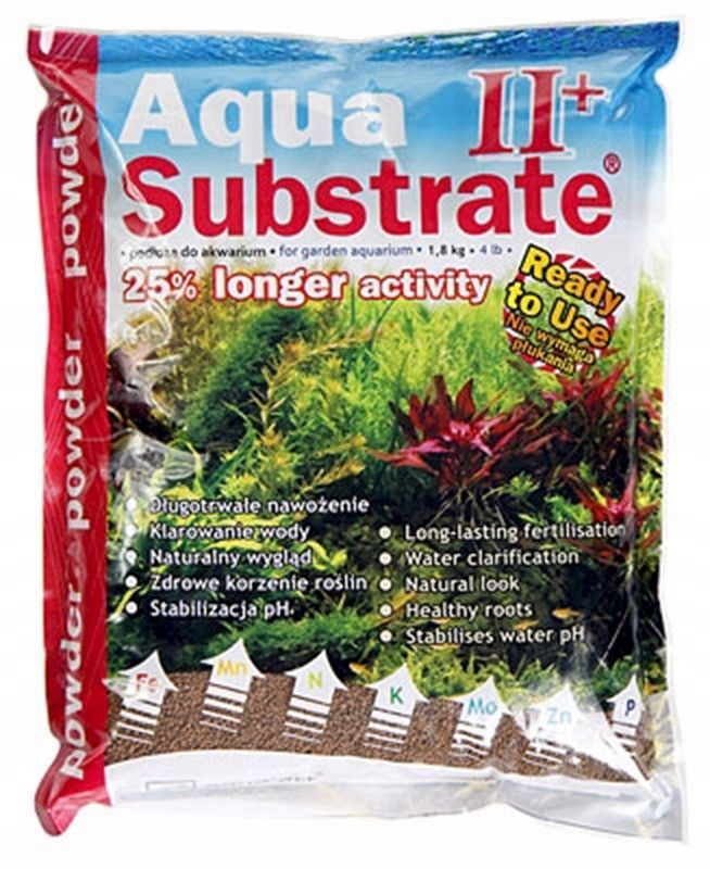 - Порошок AquasubStrate II+ - это научно развитый субстрат, созданный на основе естественной вулканической почвы. Пиен с другими необходимыми материалами и питательными веществами создает пористую, мягкую структуру, идеально подходящую для развития натуральной бактериальной флоры и правильного питания корней растений.