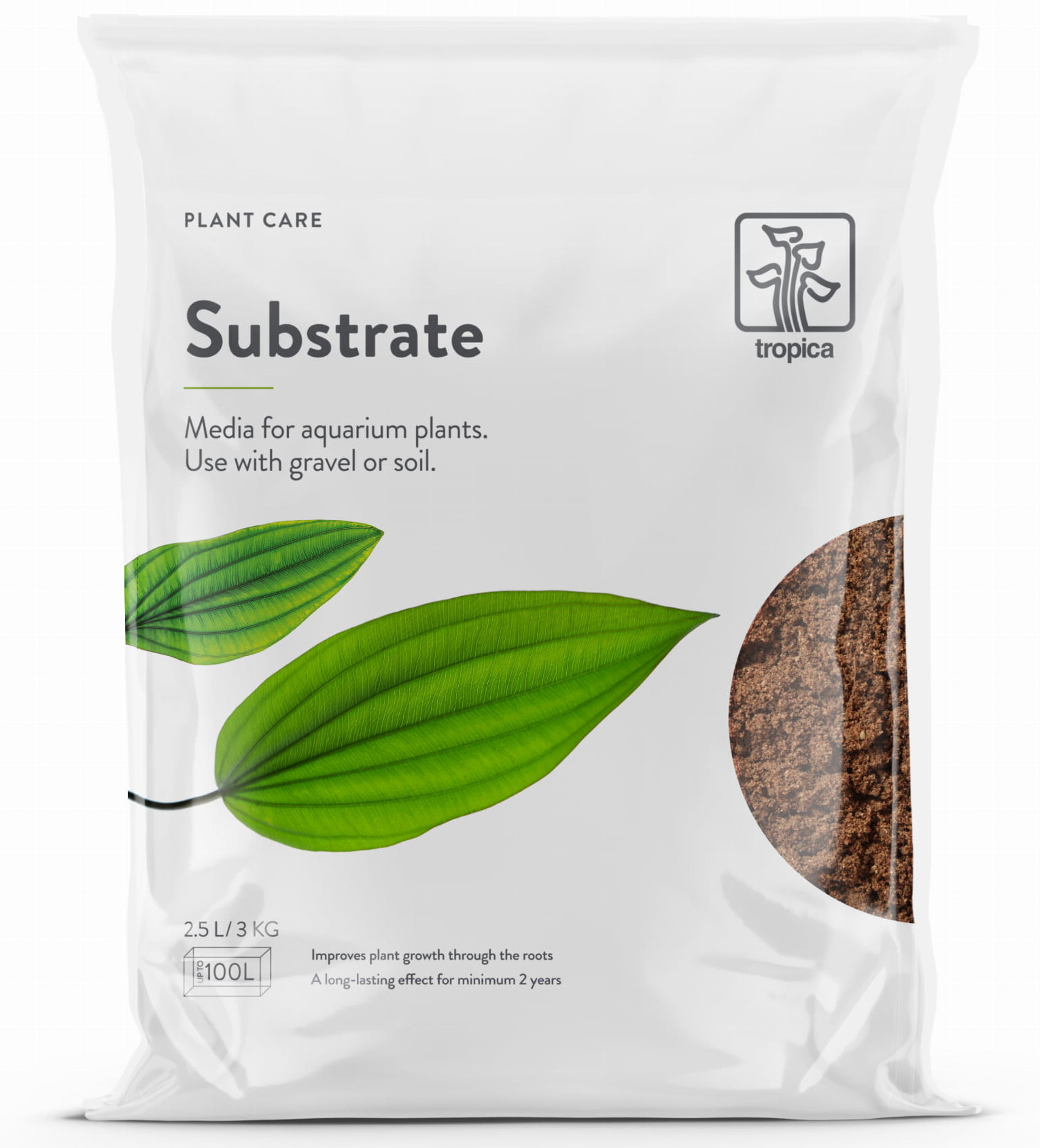 Tropica Substrate — высококачественный грунтовый грунт для пресноводных аквариумов. Поддерживает здоровый и быстрый рост растений. Он поглощает вещества из воды и выделяет их непосредственно к корням растений. Пакета объемом 2,5 л достаточно для резервуаров с основанием 70 х 35 см.