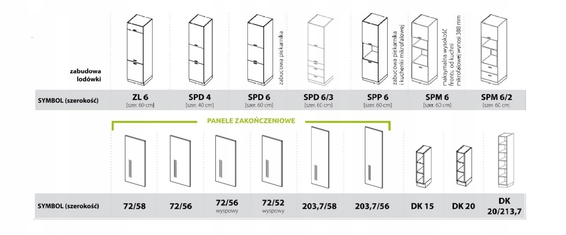 - шкаф для встраиваемого холодильника, ширина 60 см, высота 213,7 см.