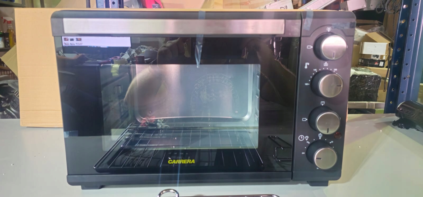 печь Carrera с 25-литровым пространством для приготовления в черном и серебре.