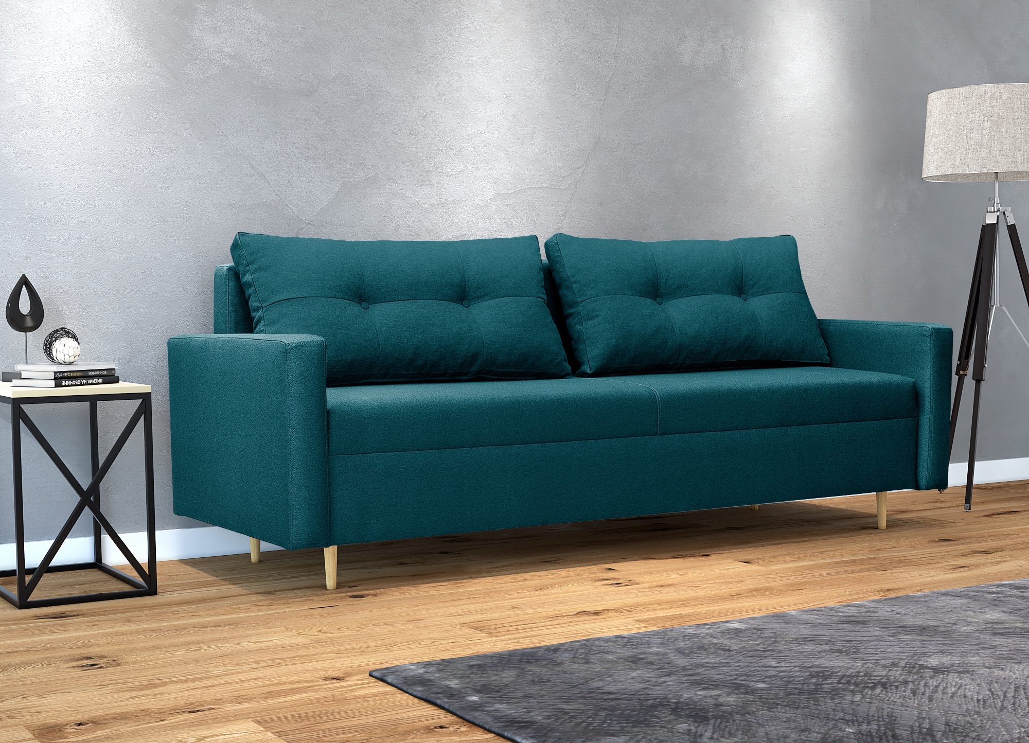 - Диван-кровать имеет контейнер для постельных принадлежностей.