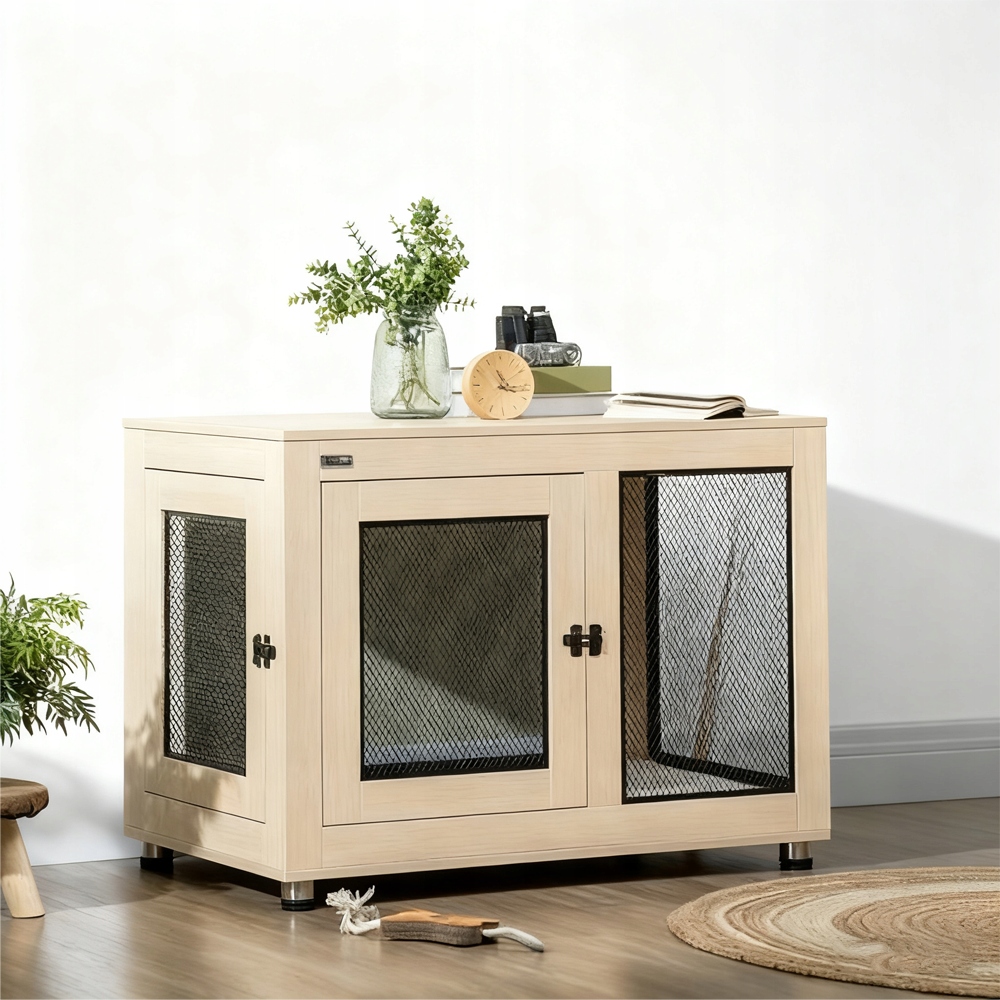 Прочные материалы: прочные стальные проволоки и прочное деревянное дно из прокатанного дерева в ящике для собак обеспечивают безопасность и долговечность.