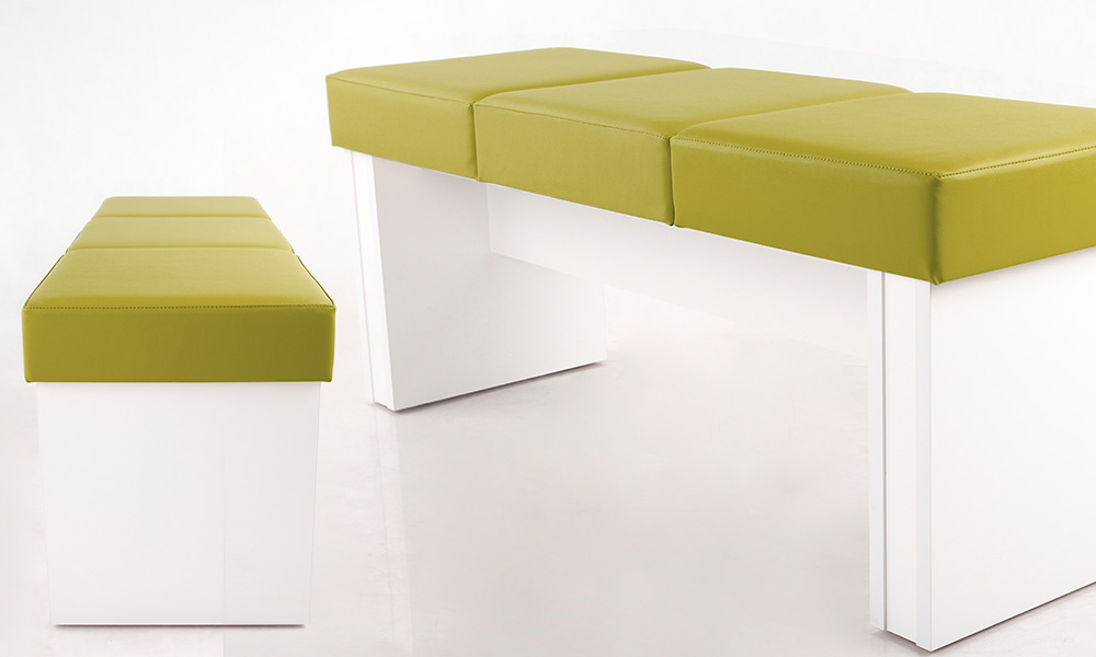 Скамейка Mezzo III изготавливается по индивидуальному заказу клиента. Большой выбор цветов обивки и каркаса позволит адаптировать скамью под ваши нужды. Каркас изготовлен из прочного ламинированного картона. Удобное мягкое сиденье изготовлено из специальной губки (молтопрен средней твердости) и обито прочной и качественной эко-кожей.