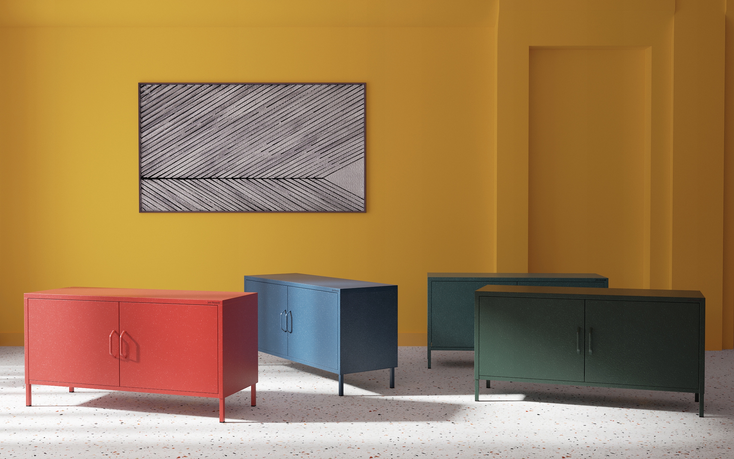 Современный шкаф под телевизор ROSA изготовлен из прочной стали толщиной 0,6 мм, которая равномерно покрыта прочным слоем краски Sparkling Brilliance™. Это делает мебель не только уникальной на рынке, но и очень устойчивой к царапинам. Тумба под телевизор ROSA на ножках из коллекции Modern – модель, которая не перестает впечатлять.