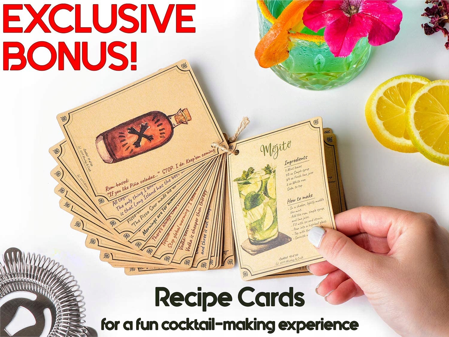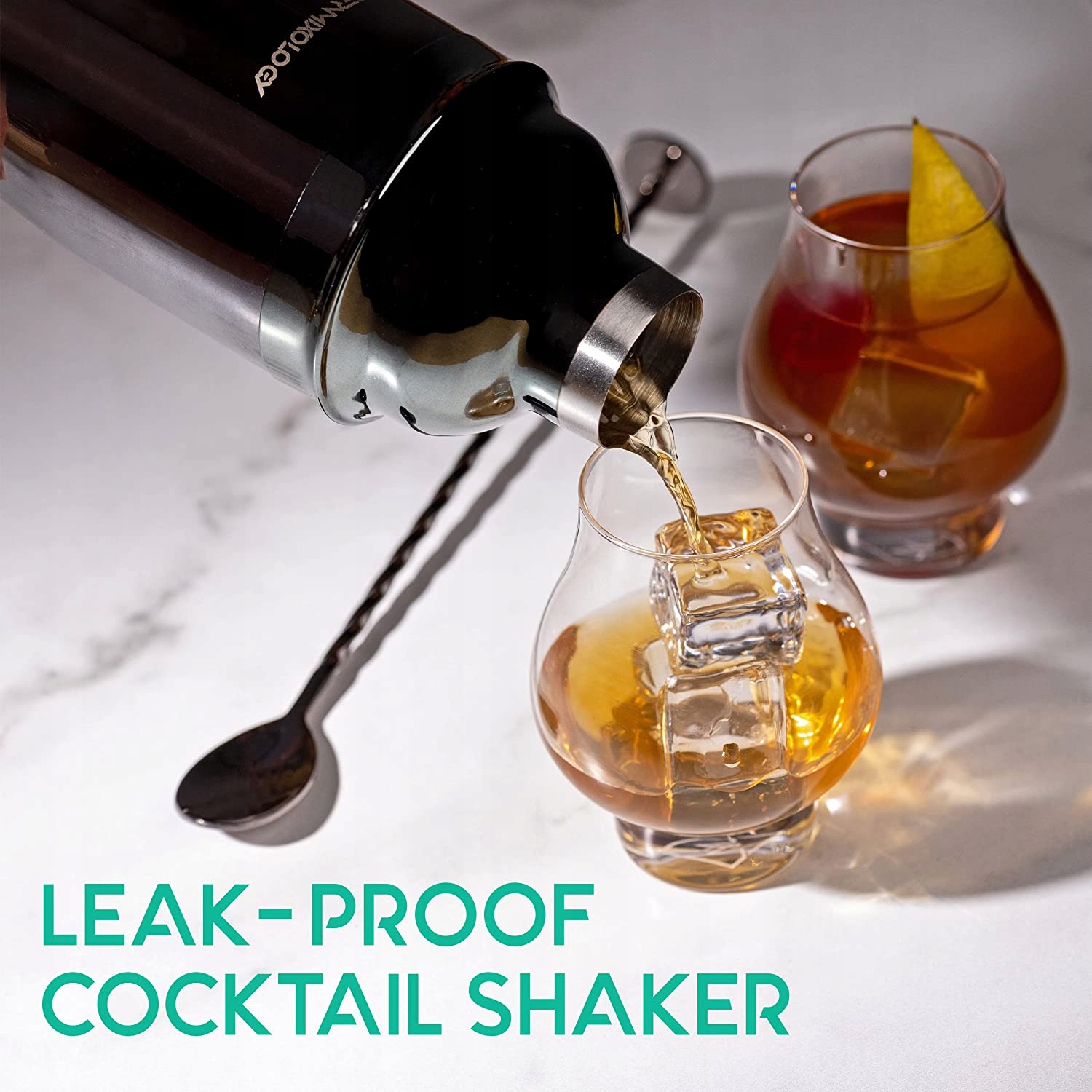 Набор для бармена Mixology с подставкой | Black Bar Set Набор шейкеров для коктейлей для смешивания напитков — Барные инструменты: шейкер для мартини, джиггер, ситечко, ложка для барного миксера, щипцы, открывалка | Лучший набор бармена для начинающих