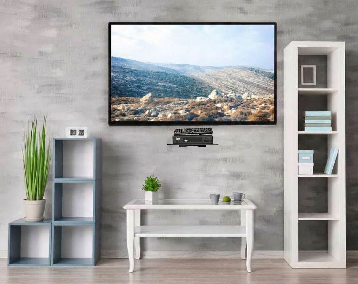 Чрезвычайно прочная и эстетичная полка для декодера и других устройств. Идеально подходит для установки под телевизором или рядом с домашним кинотеатром.