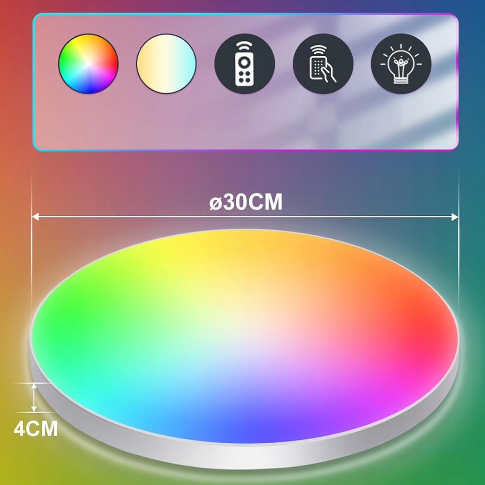 ⭐2. Применение и пульт дистанционного управления: Потолочная лампа можно управлять с помощью приложения на мобильном телефоне и 2,4G -дистанционного управления. Он имеет много функций, таких как цветовая температура (2700 К -6500 К), яркость (1%-100%), изменение цвета RGB и режим стадии. Разнообразие цветов потолочного освещения позволит вам удовлетворить все ваши потребности в освещении.