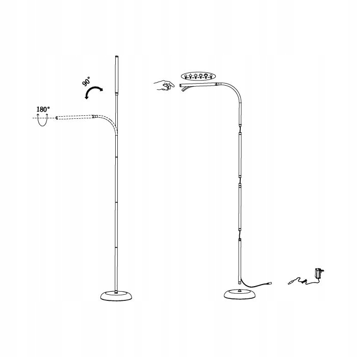 Моротка для пола Laroa изготовлен из белого пластика. Лампа оснащена уменьшающимся источником светодиодного света - функцией «Touch Me». Переключатель помещается на «Голова». Регулируемая гибкая рука позволяет направлять световой поток в любом направлении.