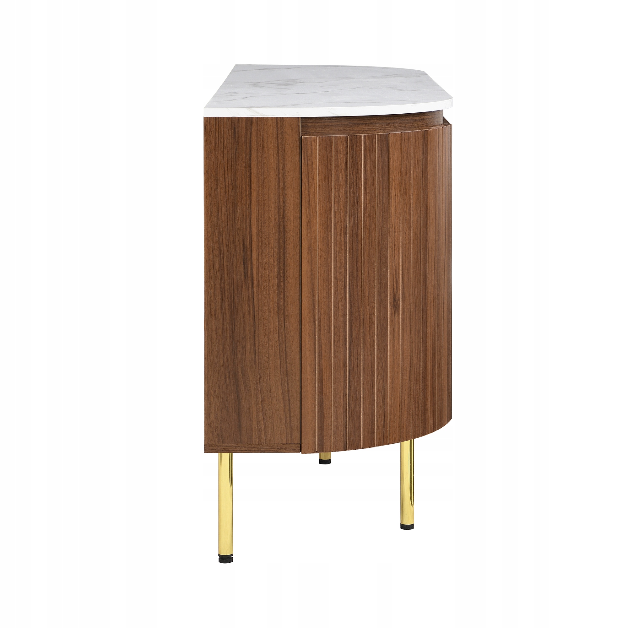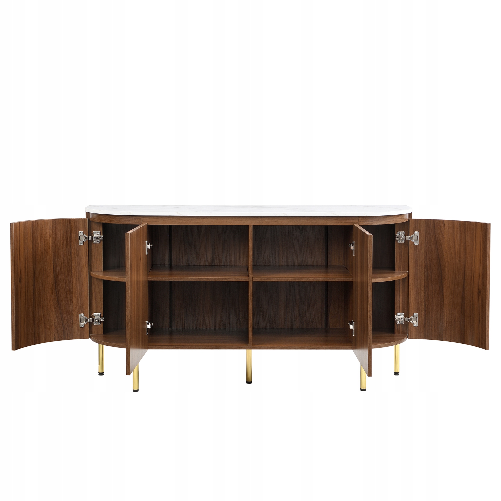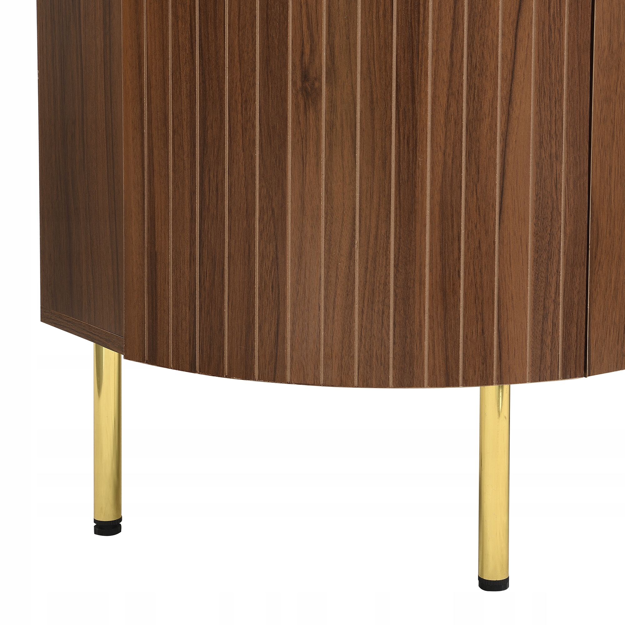 Современный сервант дугообразной формы с регулируемыми полками и металлическими ножками, идеально подходящий для гостиной и столовой (орех)