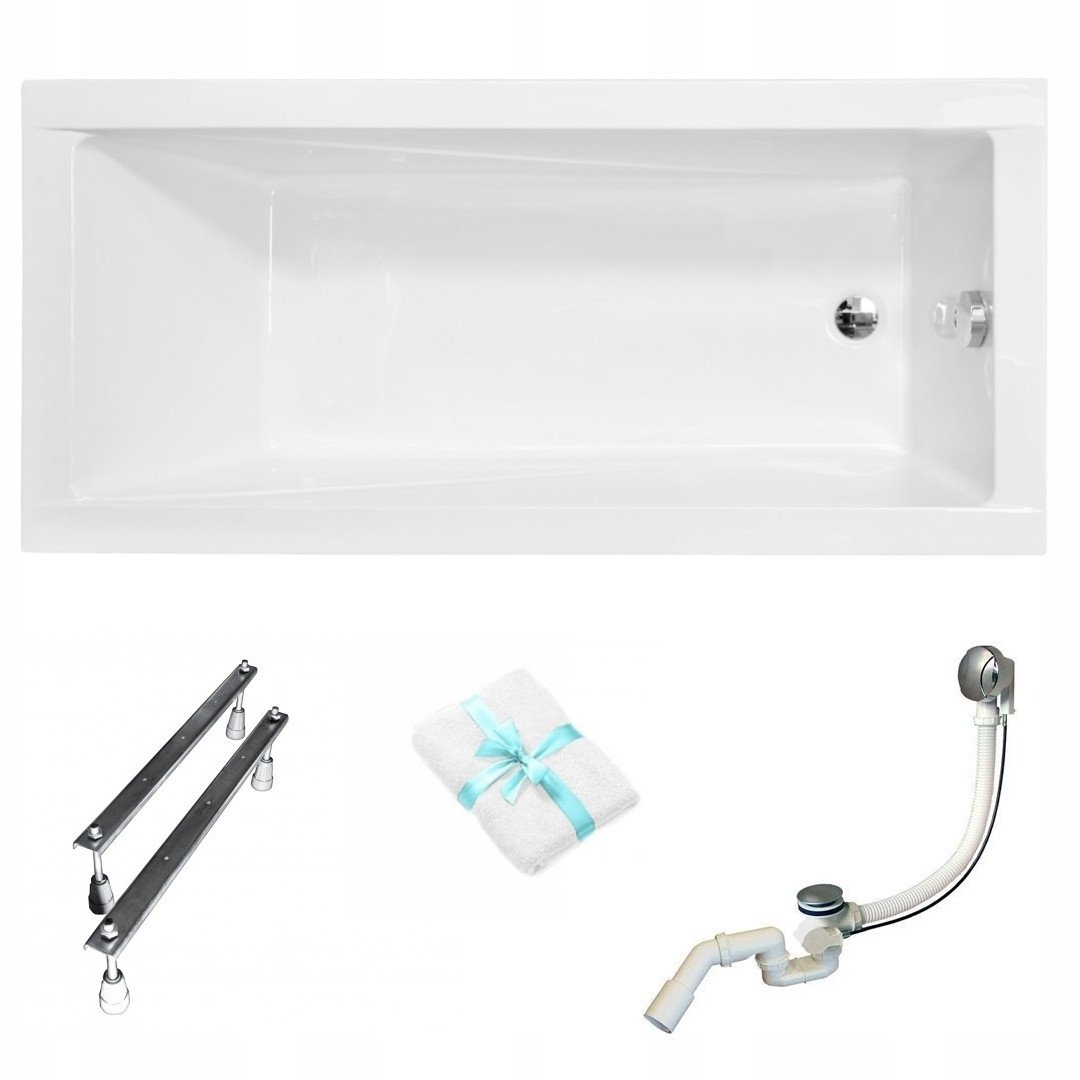 Сучасна ванна прямокутна 140х70 Besco без сифону, хромовані ніжки, рушник