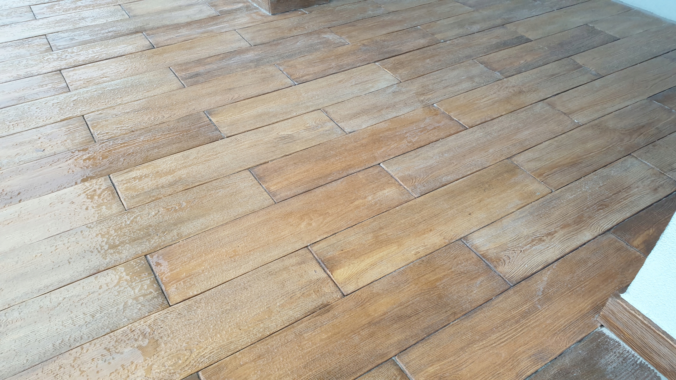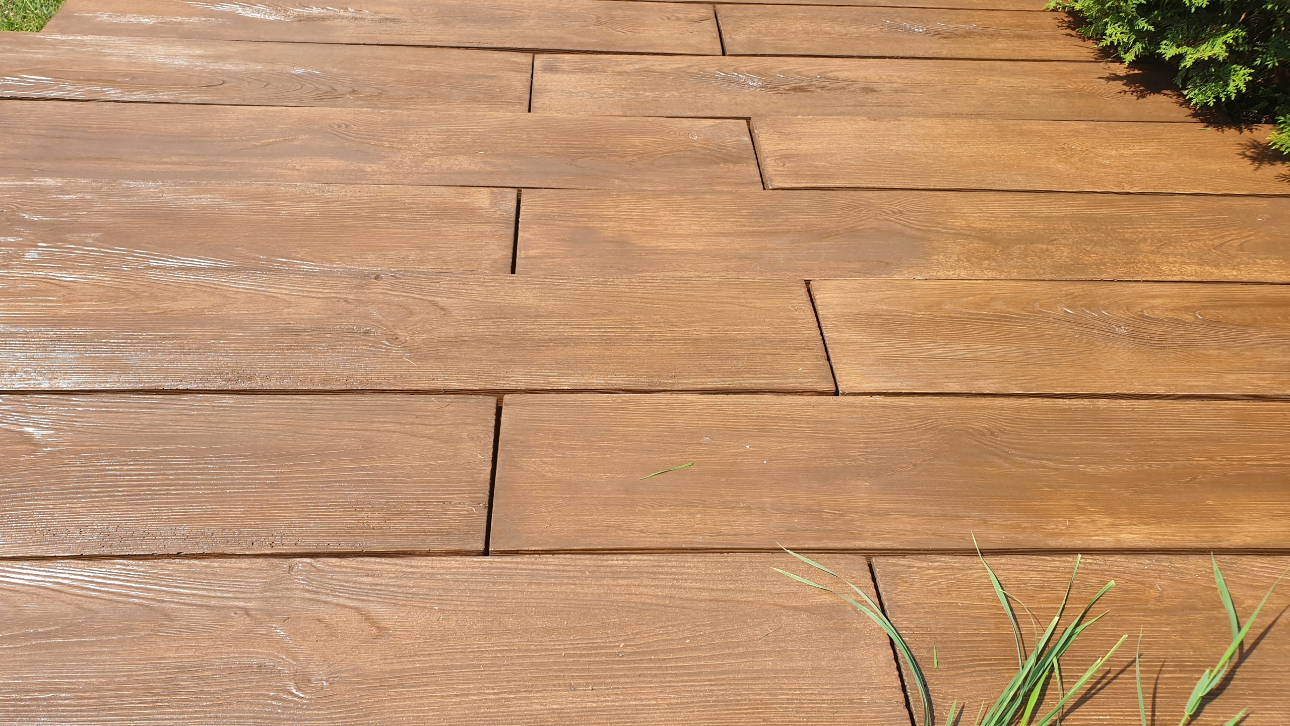 Правильно подготовленная поверхность. Перед началом работ землю необходимо выровнять. Приклеиваем бетонную древесину к поверхности с помощью высокоэластичного полимерного клея (имеется в нашем предложении). Его следует распределить равномерно по всей поверхности. На подготовленную площадку укладываем бетонные плиты. Расстояния между отдельными досками заделываем песком.