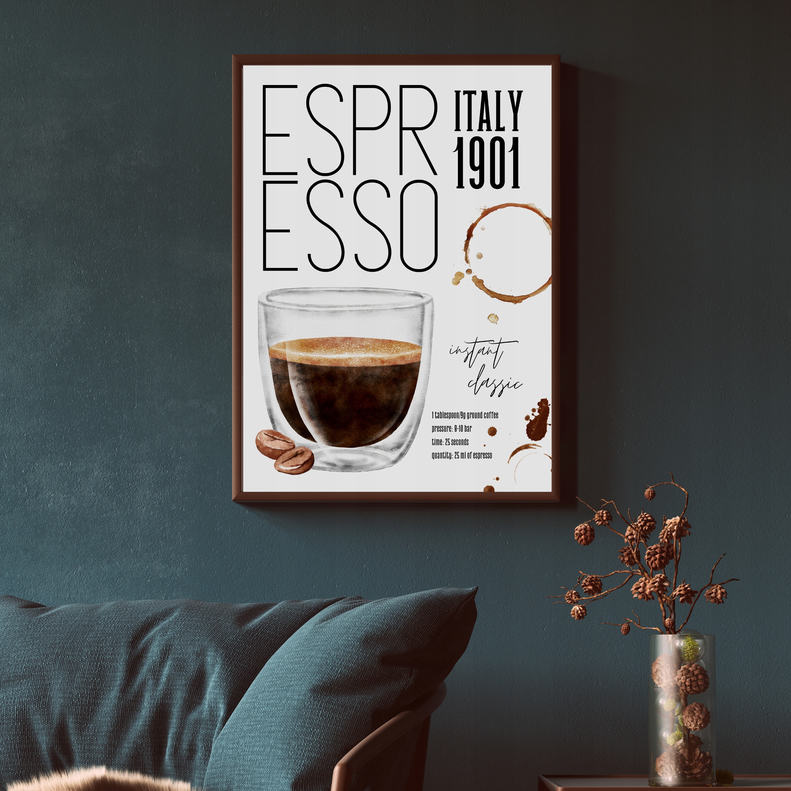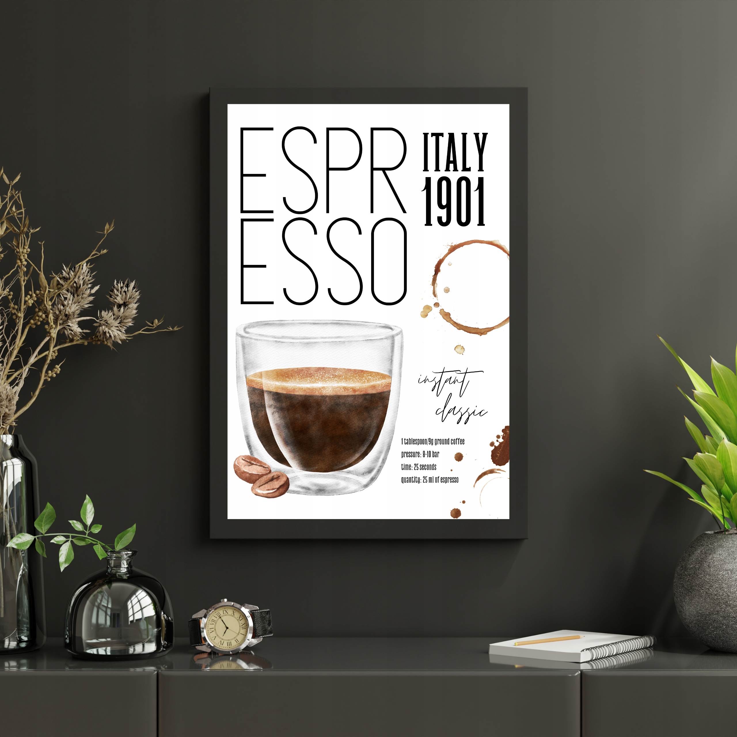 СОВРЕМЕННЫЕ КАРТИНЫ ДЛЯ КУХНИ ГОСТИНОЙ ПЛАКАТ НА НАСТЕНУ ЭСПРЕССО КОФЕ 30Х40 А3