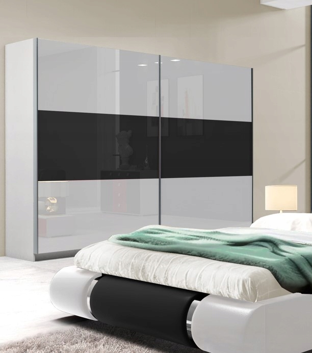 Корпус шкафа белый, фасады черно-белые - глянцевый - ЭТОТ ШКАФ МОЖЕТ БЫТЬ ШИРИНОЙ 150 СМ ИЛИ 240 СМ, А ТРЕХДВЕРНЫЙ ШКАФ - 270 СМ