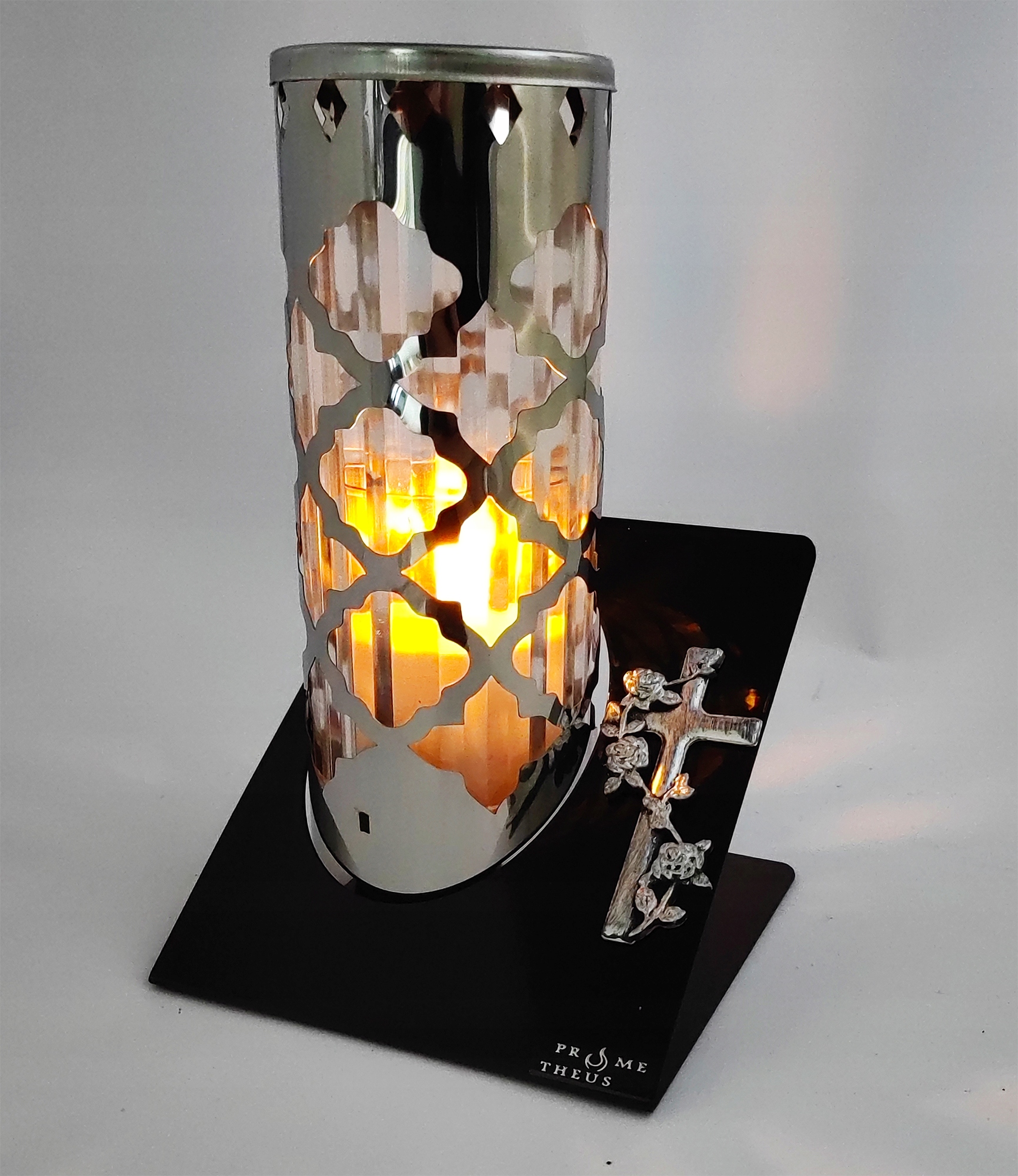 Удивительная современная свеча из металла. Трубка с вырезанными украшениями была изготовлена из высококачественной стали. Внутри есть гофрированная трубка из бесцветного пластика, которая отвлекает свет, дает уникальный эффект.