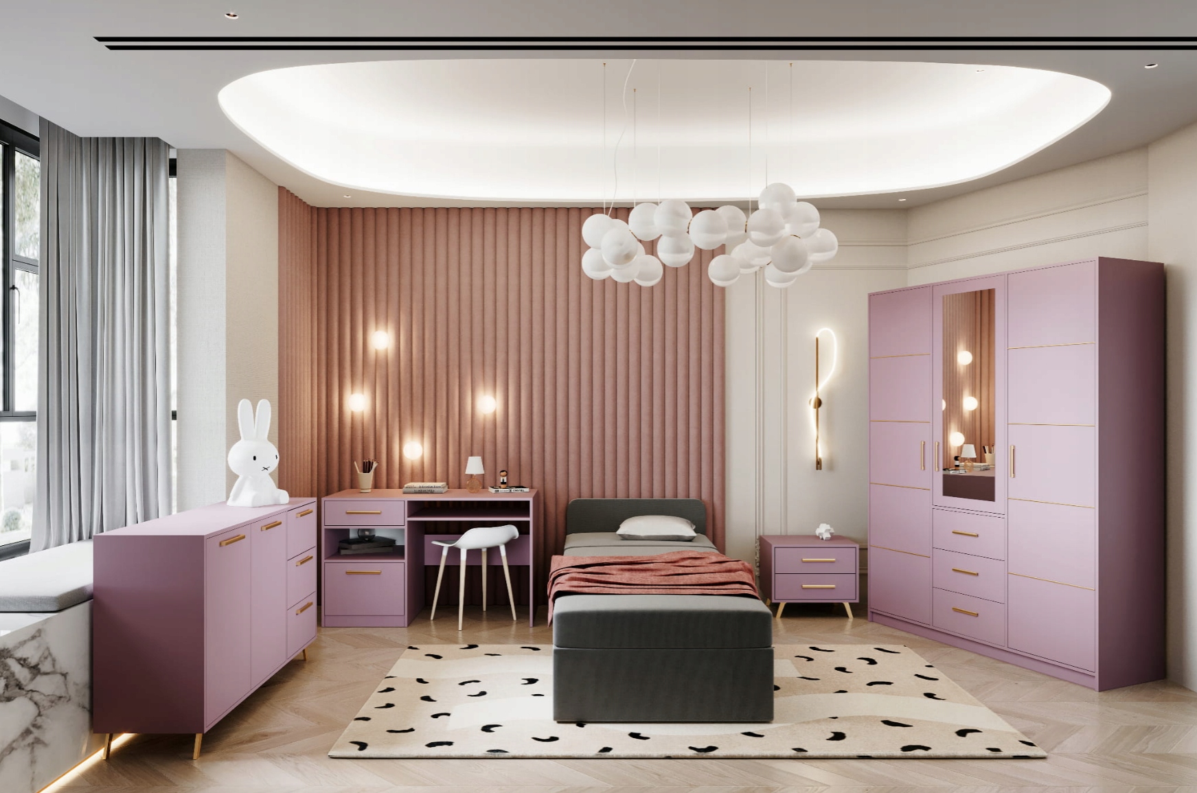 Сучасні рожеві молодіжні меблі для спальні ST