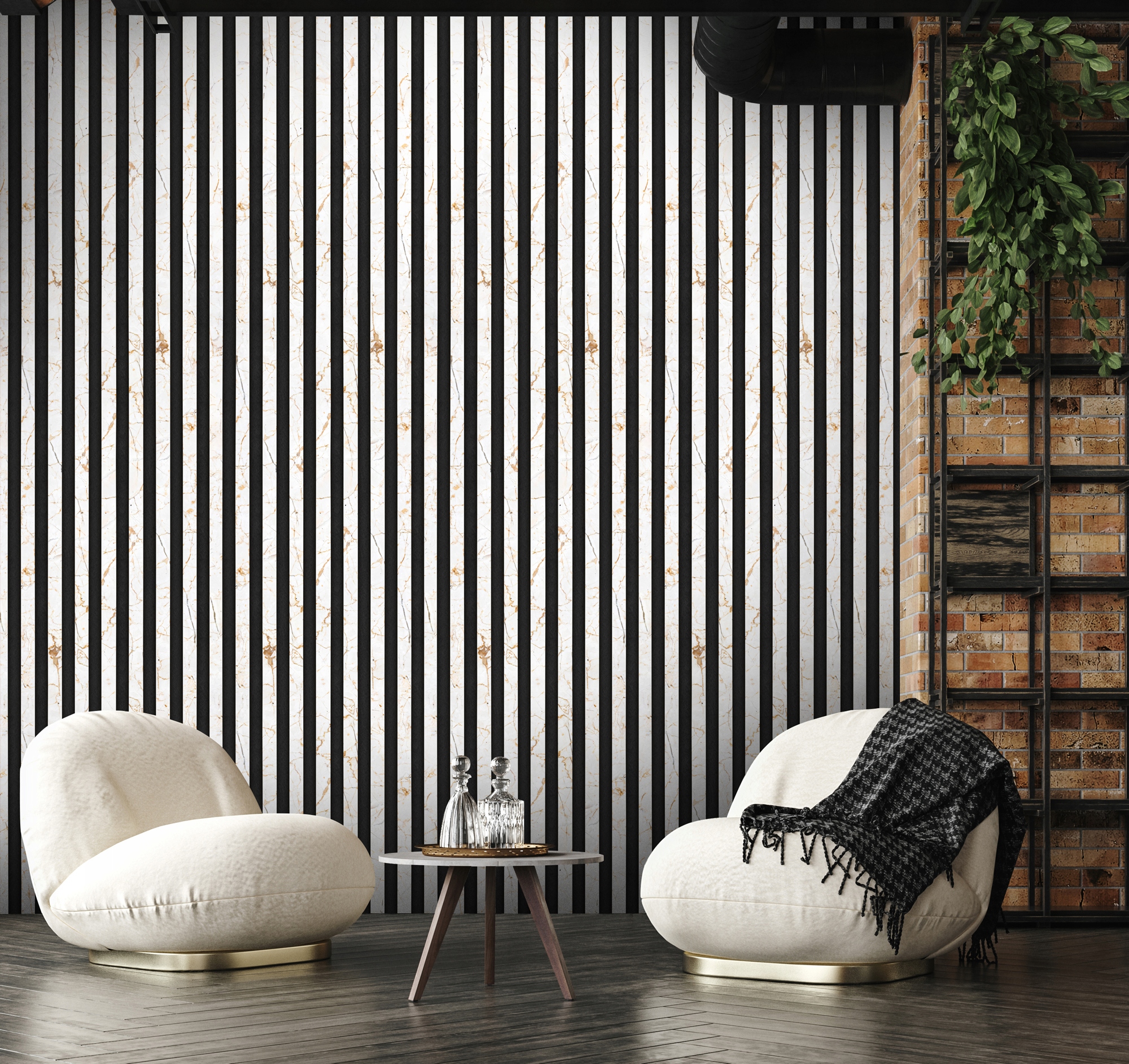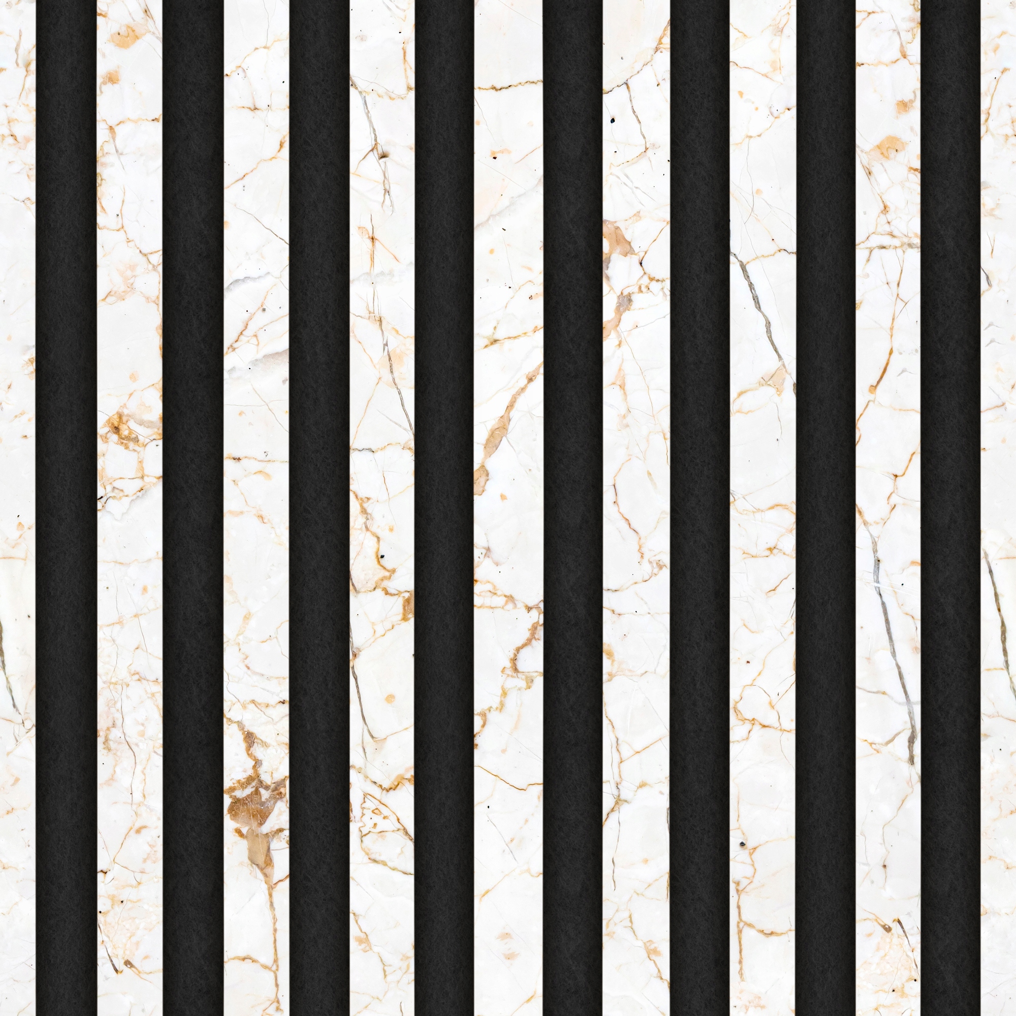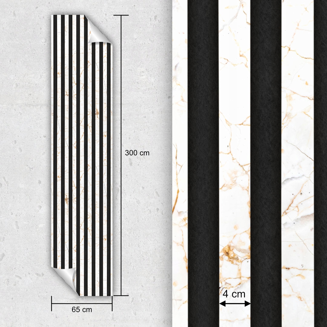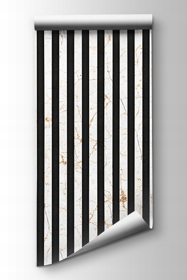 Современные обои, имитирующие изящные ламели светлого мрамора на темном фоне. Рисунок придаст помещению неповторимый вид, добавит глубины и ощущения роскоши. Он идеально вписывается в различные интерьеры: от современного до классического, от минималистичного до более экстравагантного. Он идеально подойдет для гостиных, спален, офисов и ресторанов, придав каждому помещению уникальный характер.