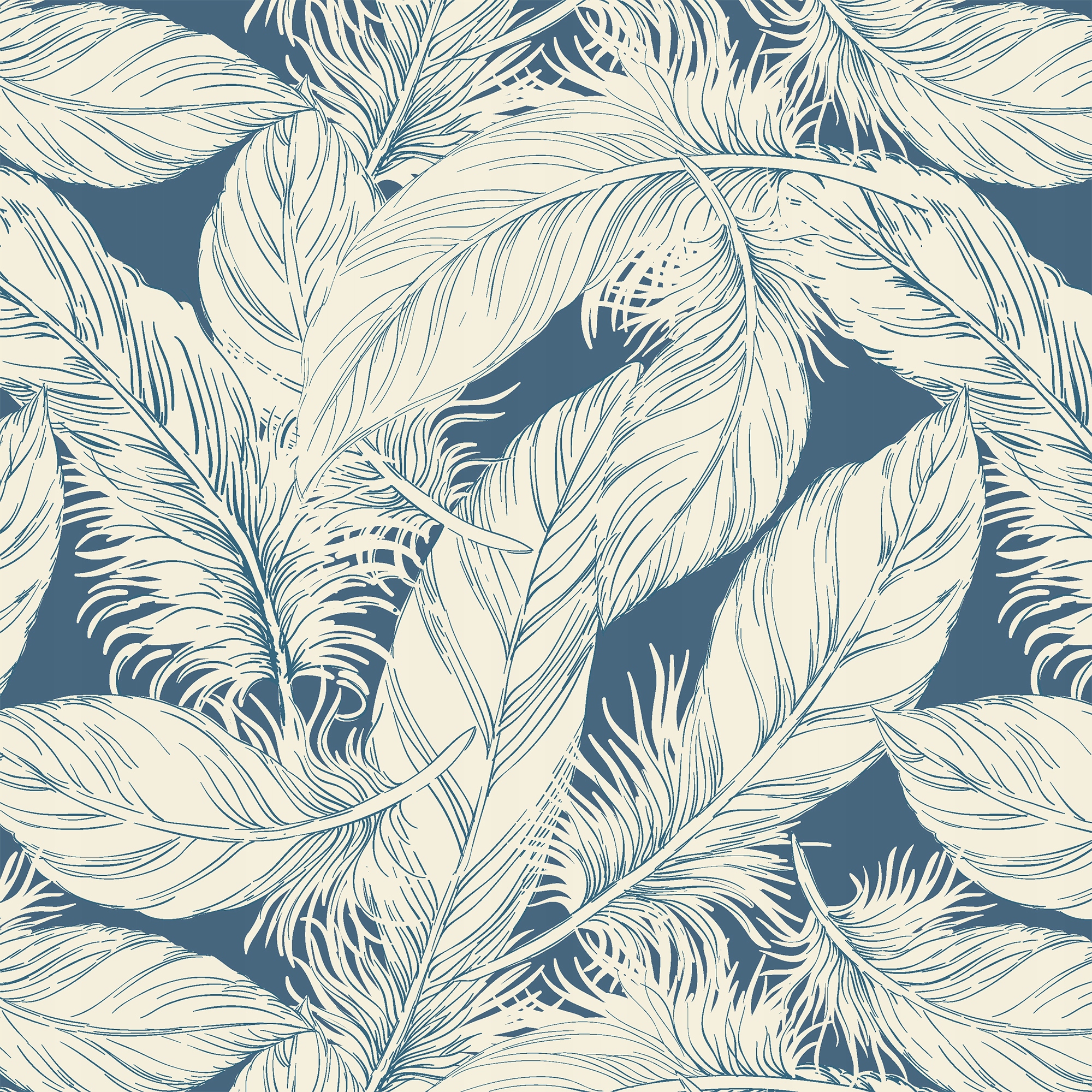 Обои с графическим мотивом перьев кремового оттенка на синем фоне. Простой современный стиль в сочетании с красивым сочетанием цветов может стать практичным украшением любого интерьера. Он отлично подойдет как дизайнерский акцент или украшение главной стены комнаты. Перья ассоциируются с легкостью, синие с цветом неба – это выведет композицию на совершенно новое измерение и выделит ее среди стандартных решений.