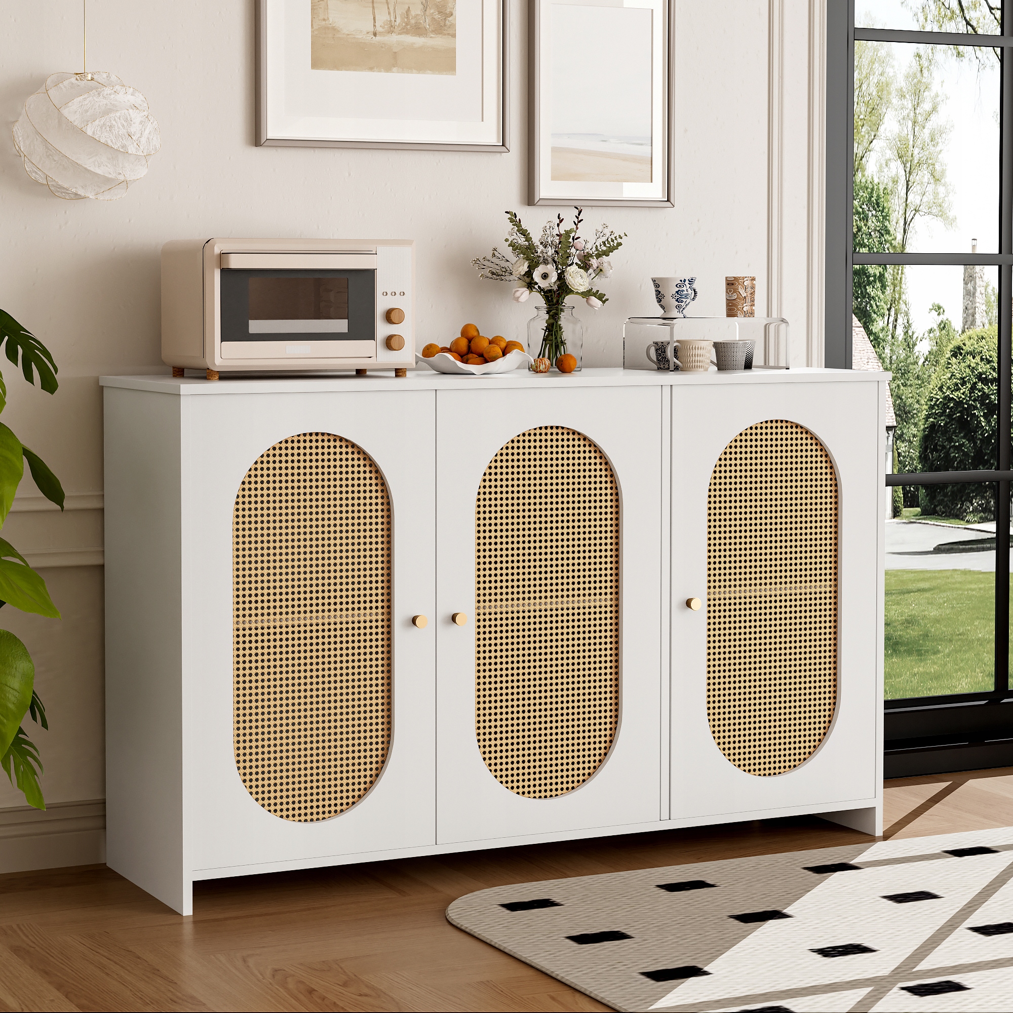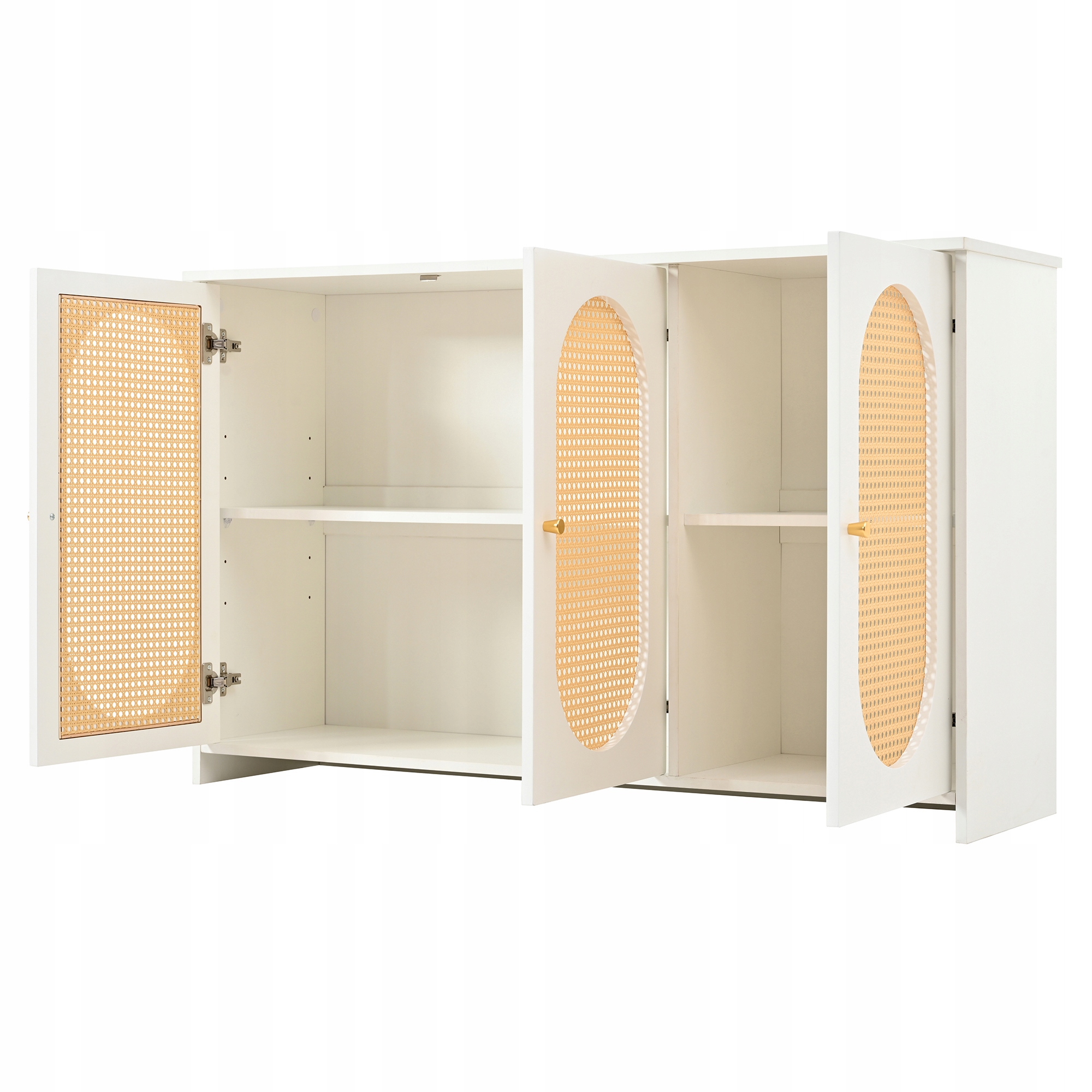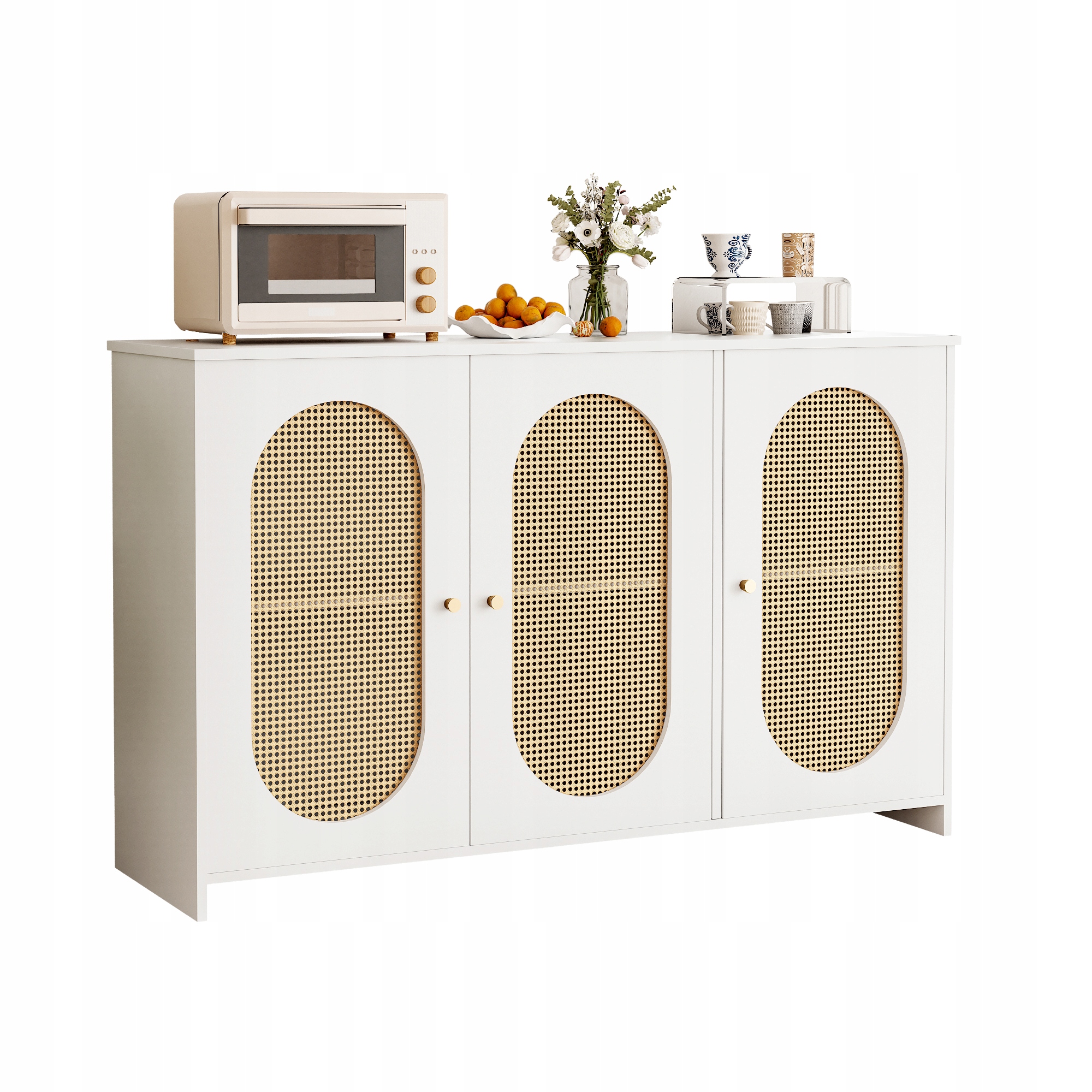 Современный, стильный буфет с 3 дверями, большим пространством для хранения, искусственными дверями ротанга и металлическими ручками, декоративная мебель для столовой, гостиная и кухня (белая) h1>