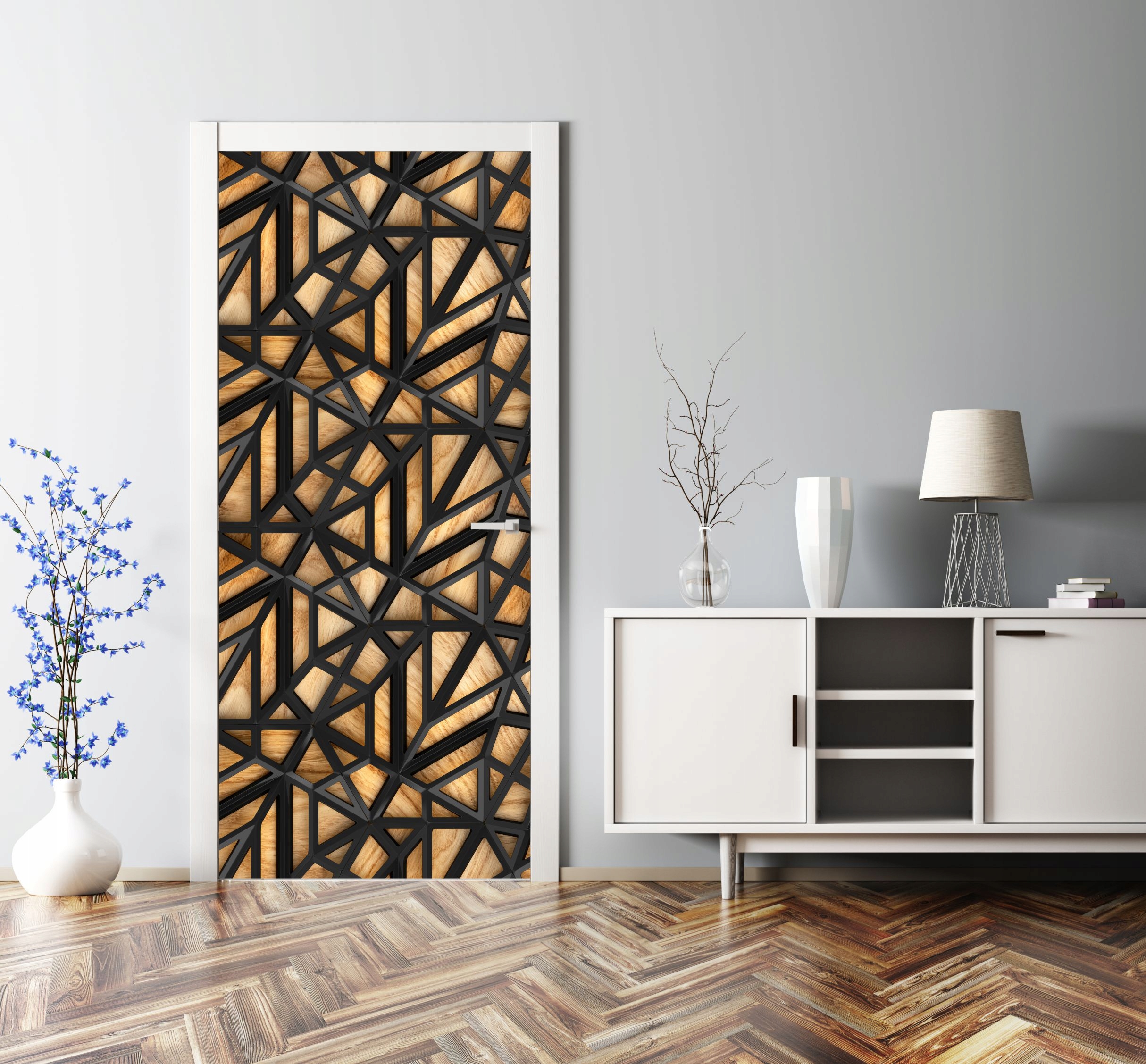 СОВРЕМЕННЫЙ 3D ШПОН ДЛЯ ДВЕРЕЙ, ДЕРЕВО, ЧЕРНЫЙ УЗОР
