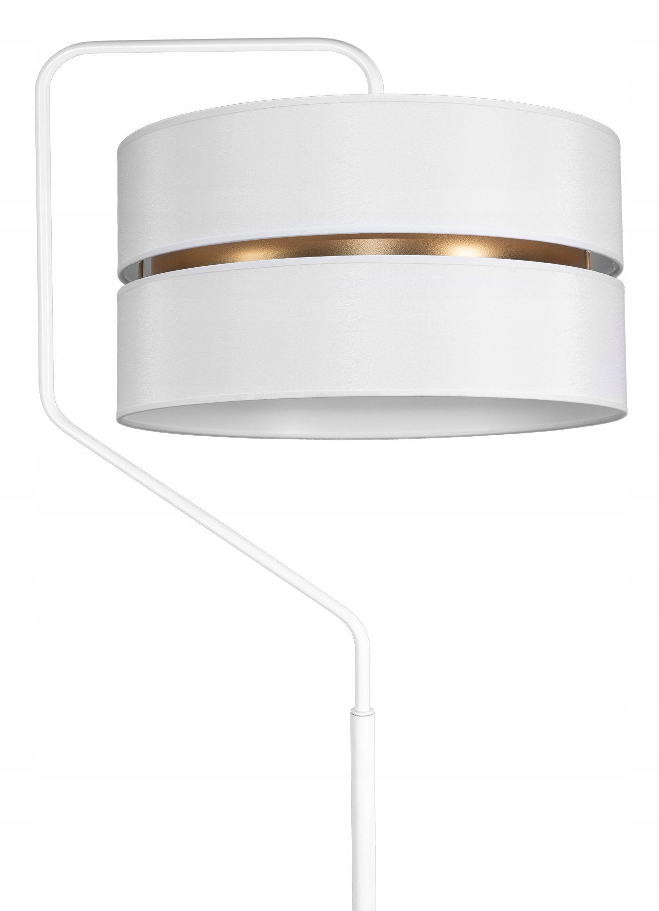 Современный торшер - белый с белым абажуром, золотой фурнитурой и серебряной внутренней частью, рассеивающей свет. Дизайнерский стиль идеально впишется в ваш интерьер. Он дополняет потолочные светильники.