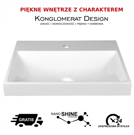 APM конгломерат конгломерат Washbasins Продукт Konglomerat Дизайн характеризуется высоким качеством используемых материалов, вниманием к деталям и привлекательной ценой. Все модели, которые мы предлагаем, были произведены в Польше. Раковины имеют гигиенический сертификат