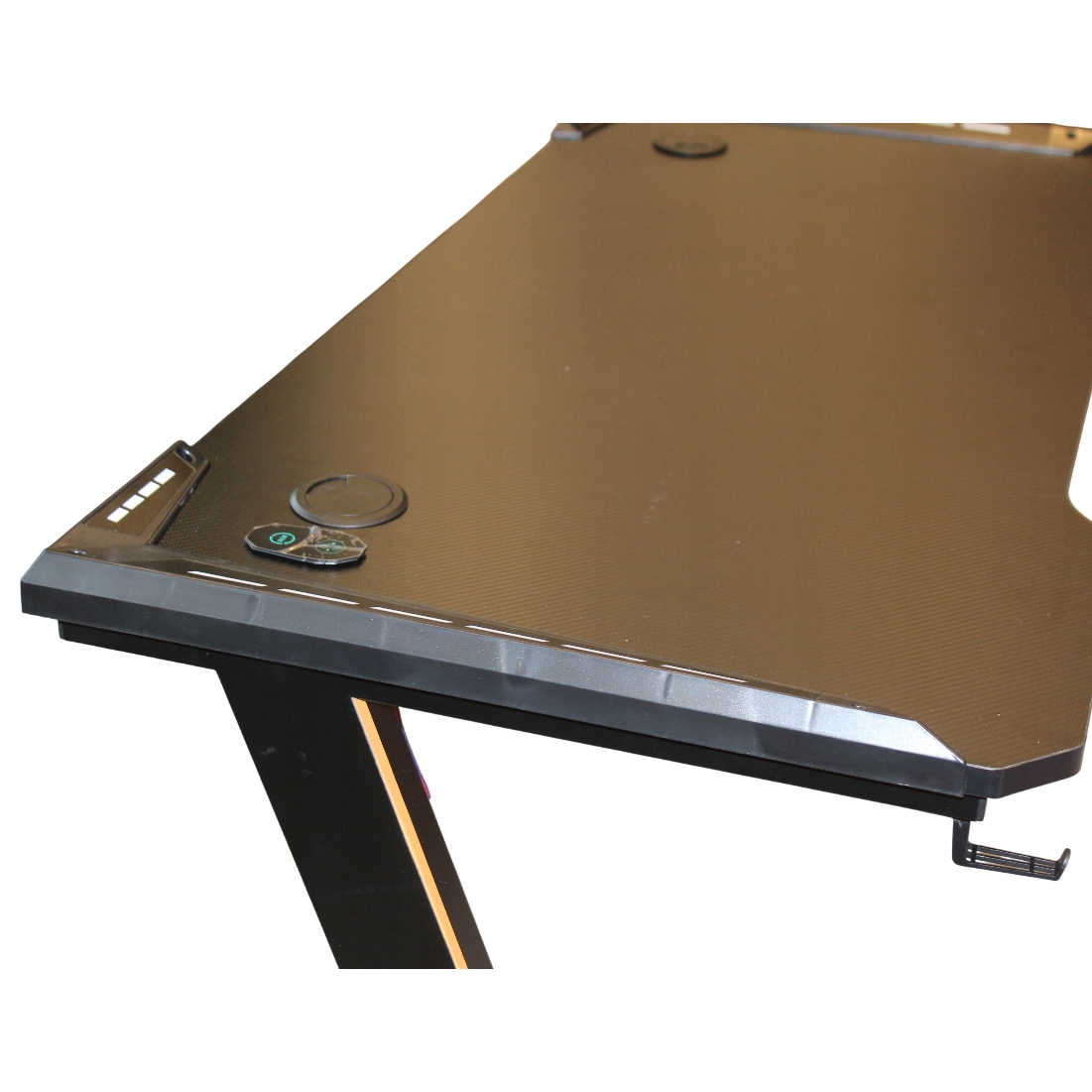 - Уникальный дизайн: Подсветка только в углах столешницы — минималистичная, но агрессивная деталь, которая притягивает взгляд и не отвлекает во время игры.