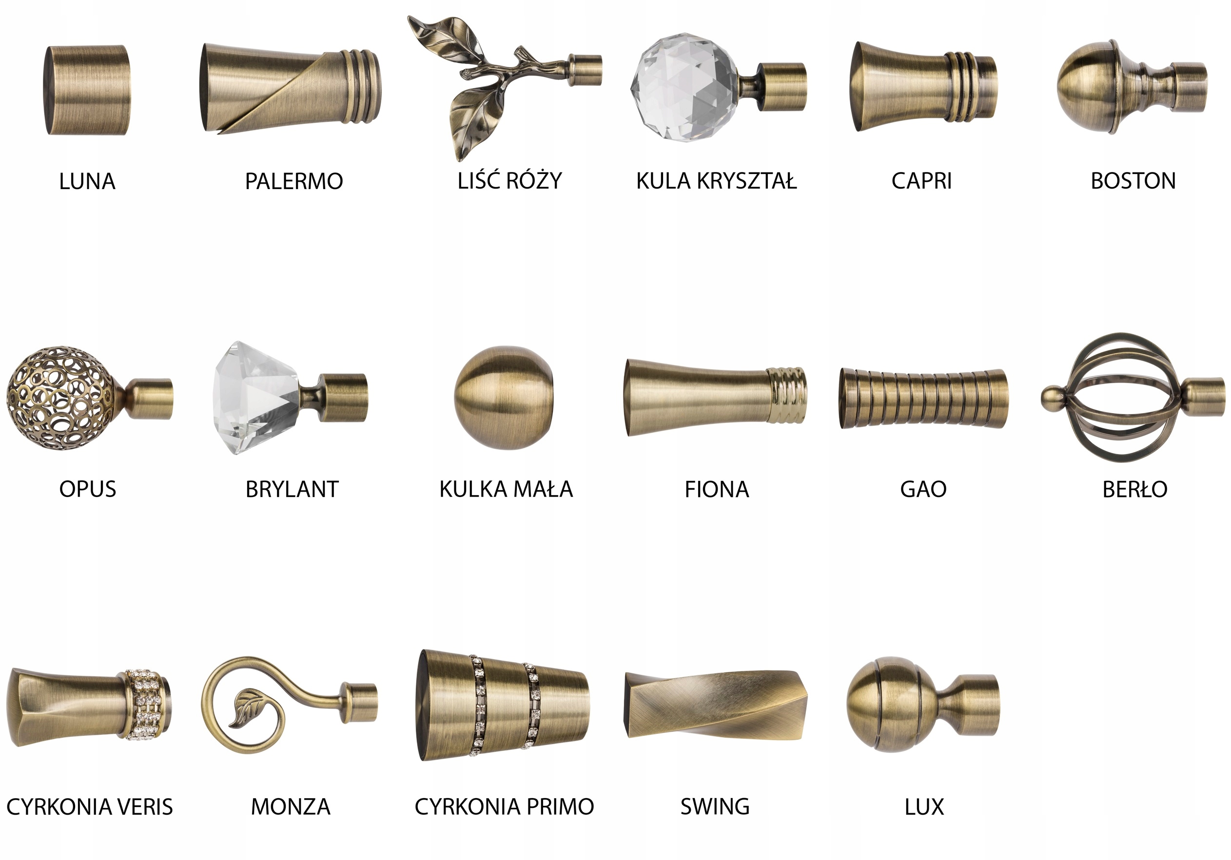 Ширина карниза 240 см, декоративные наконечники удлиняют карниз в зависимости от выбранной модели наконечника.