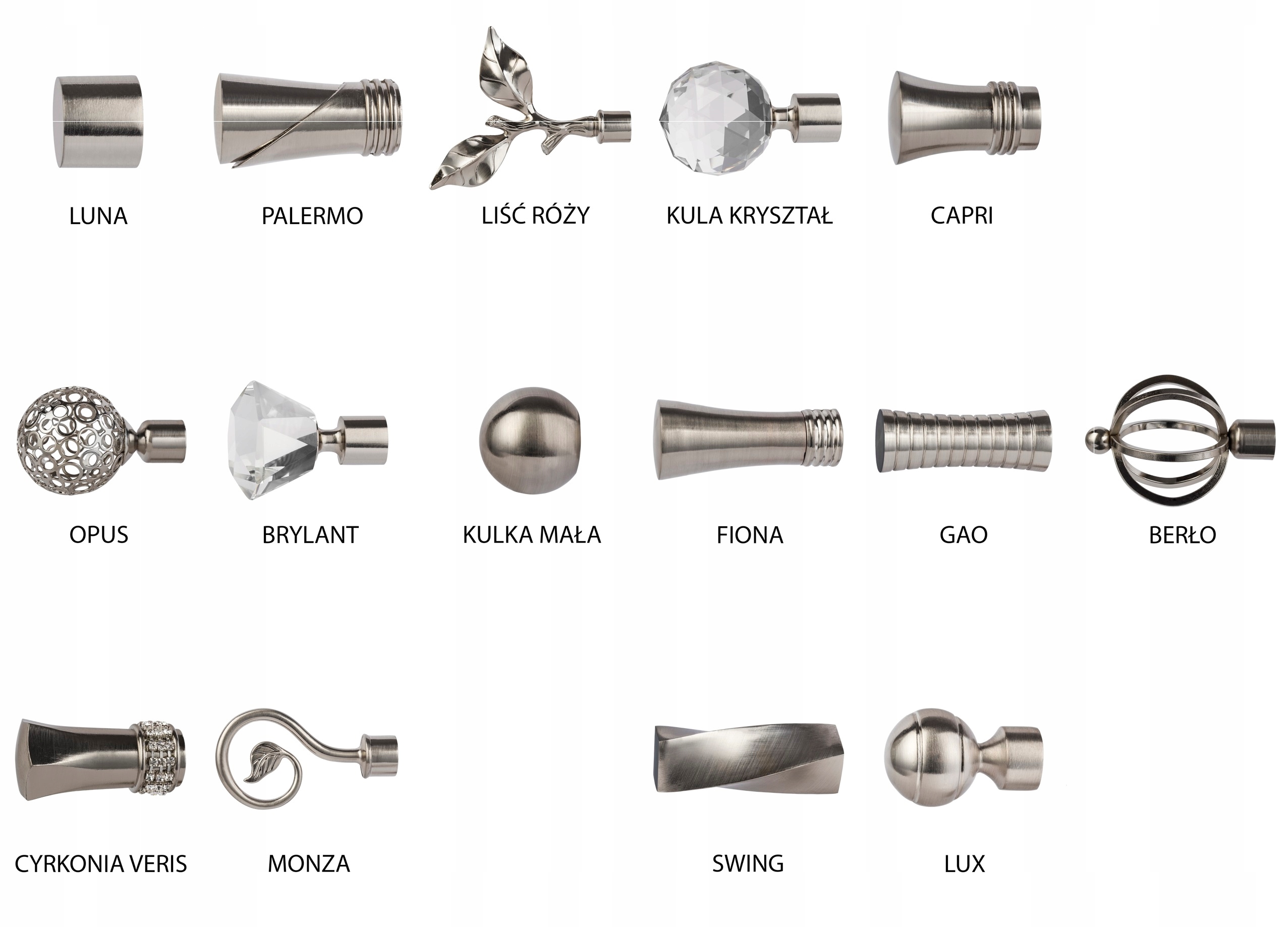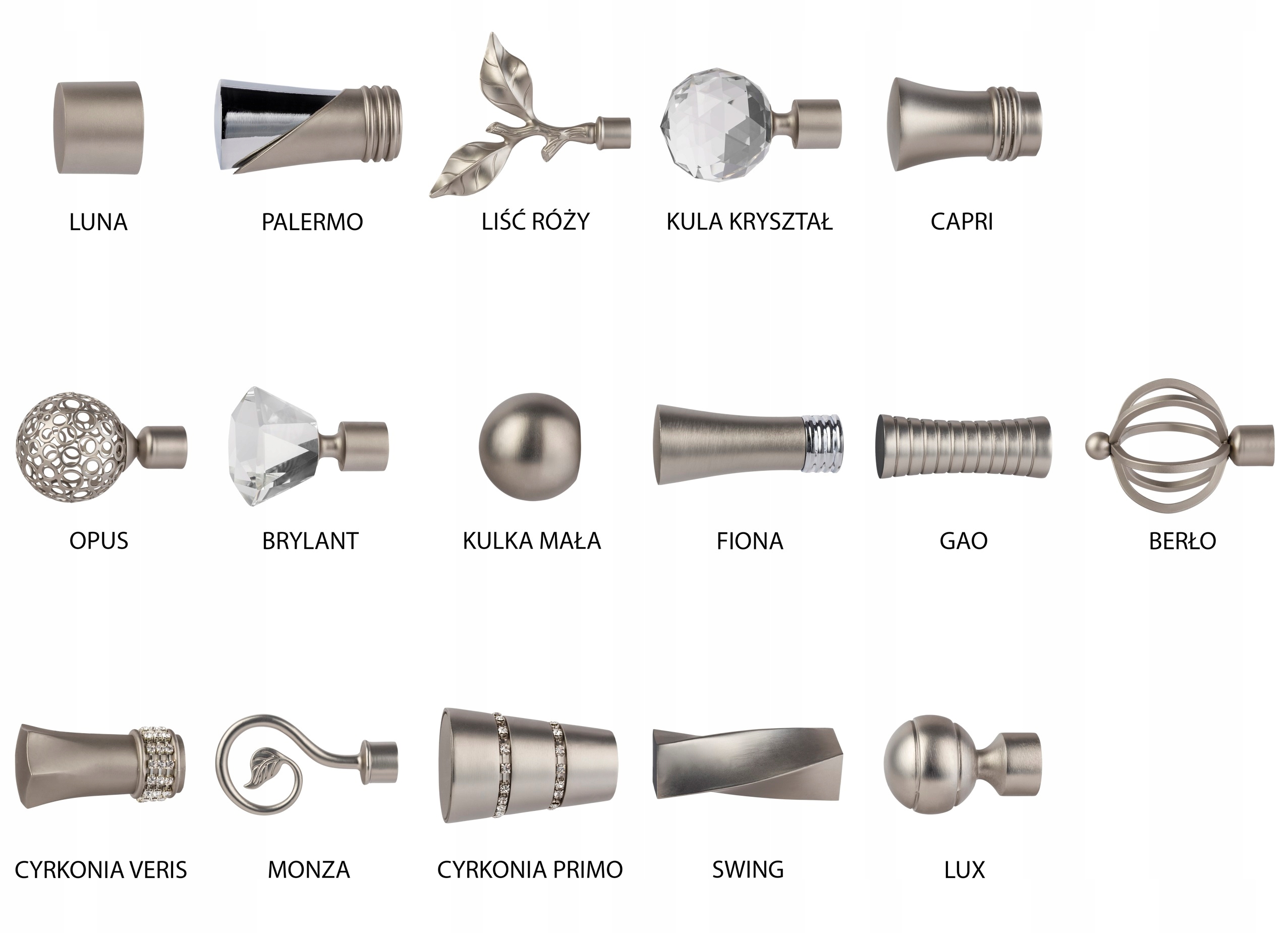 Ширина карниза 160 см, декоративные наконечники удлиняют карниз в зависимости от выбранной модели наконечника.
