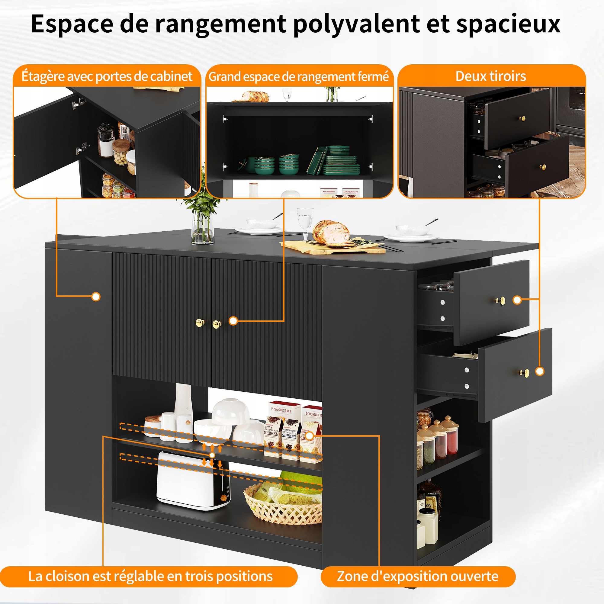 4. Универсальное хранение: этот кухонный остров предлагает много места для хранения вещей и оснащен ящиками и полками с обеих сторон для удовлетворения различных потребностей.