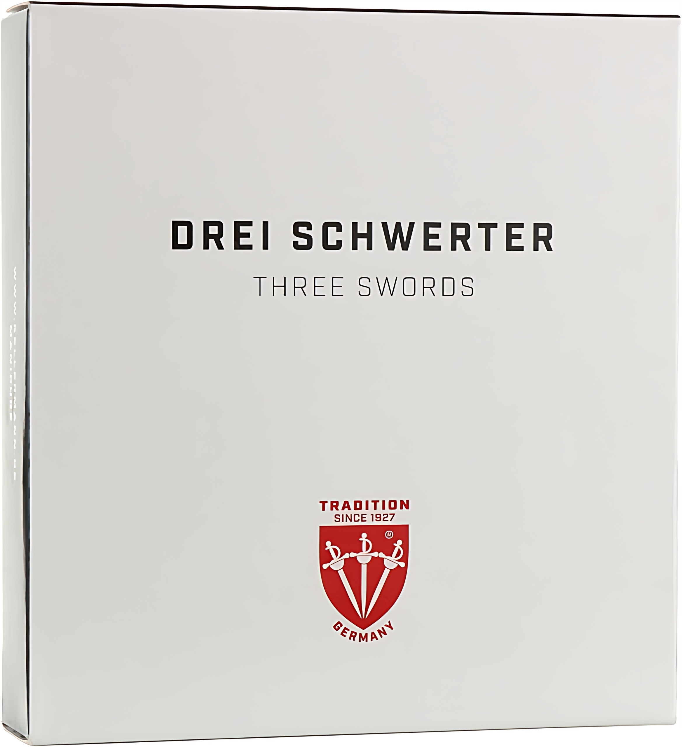 ✅Все упаковано в фирменный кейс, материал покрыт тиснением с гербом бренда - тремя мечами.