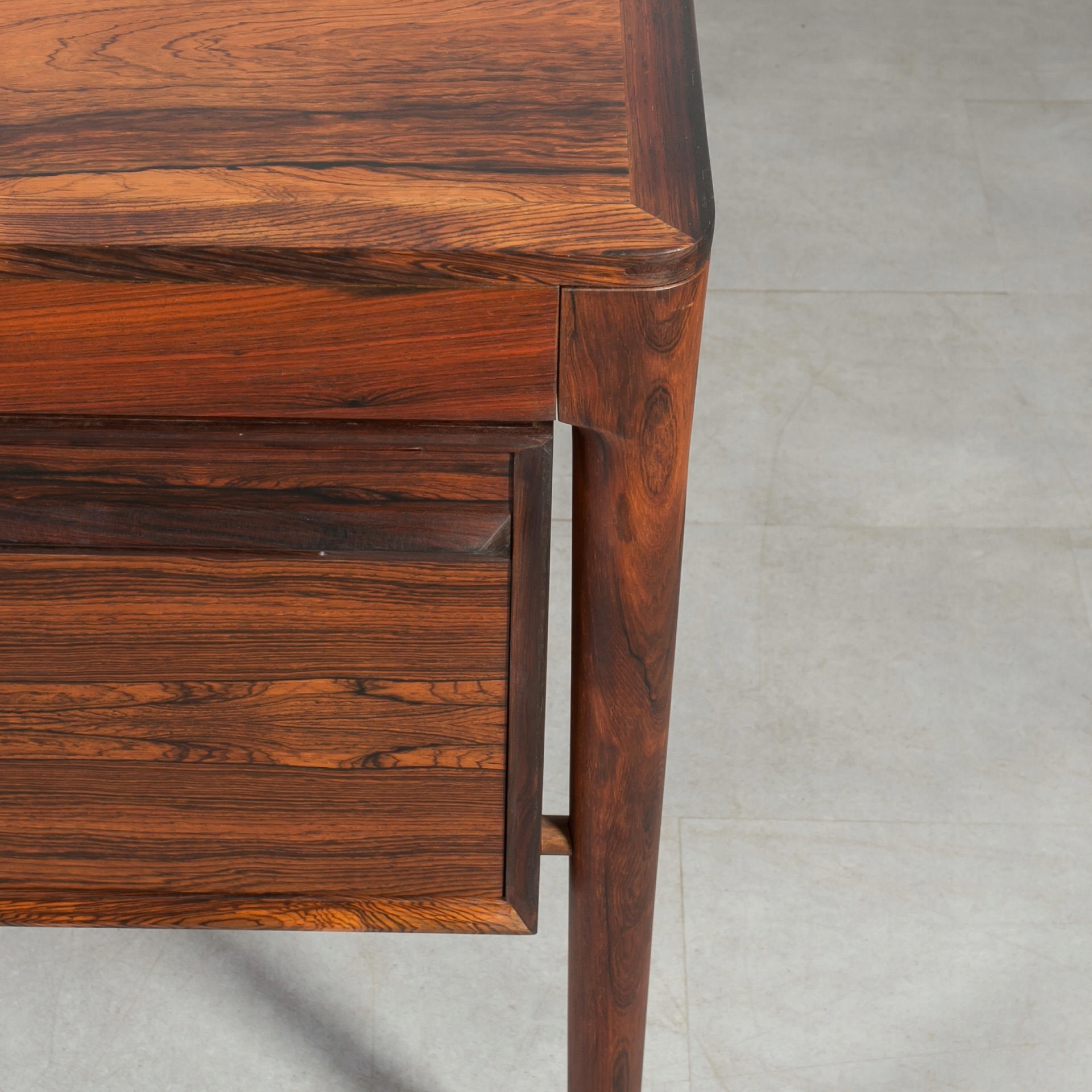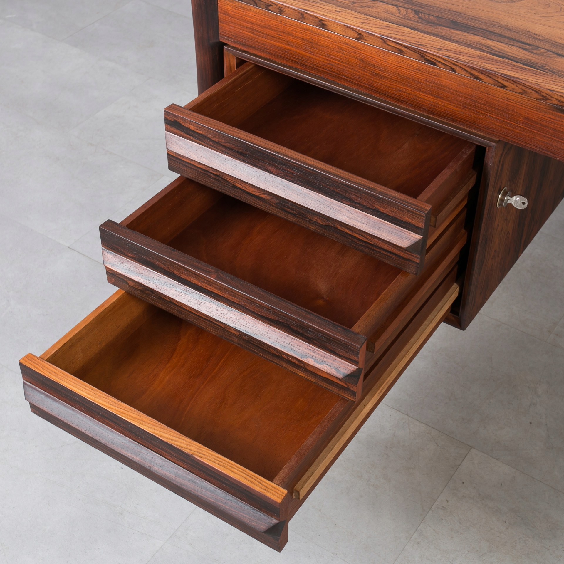 Уникальный письменный стол 1960-х годов в скандинавском стиле, изготовленный в Норвегии на известной фабрике Bruksbo. Приписанное выдающемуся дизайнеру Торбьёрну Афдалю и имеющее оригинальную этикетку производителя, оно представляет собой прекрасный пример мастерства скандинавского дизайна.