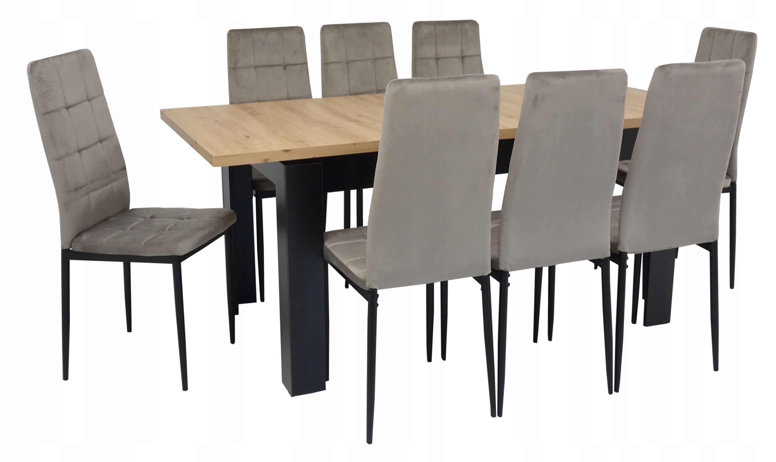 (1 столешница C180 черный/дуб ремесленный, 8 x IK 07 бежево-серый велюровый бархат)