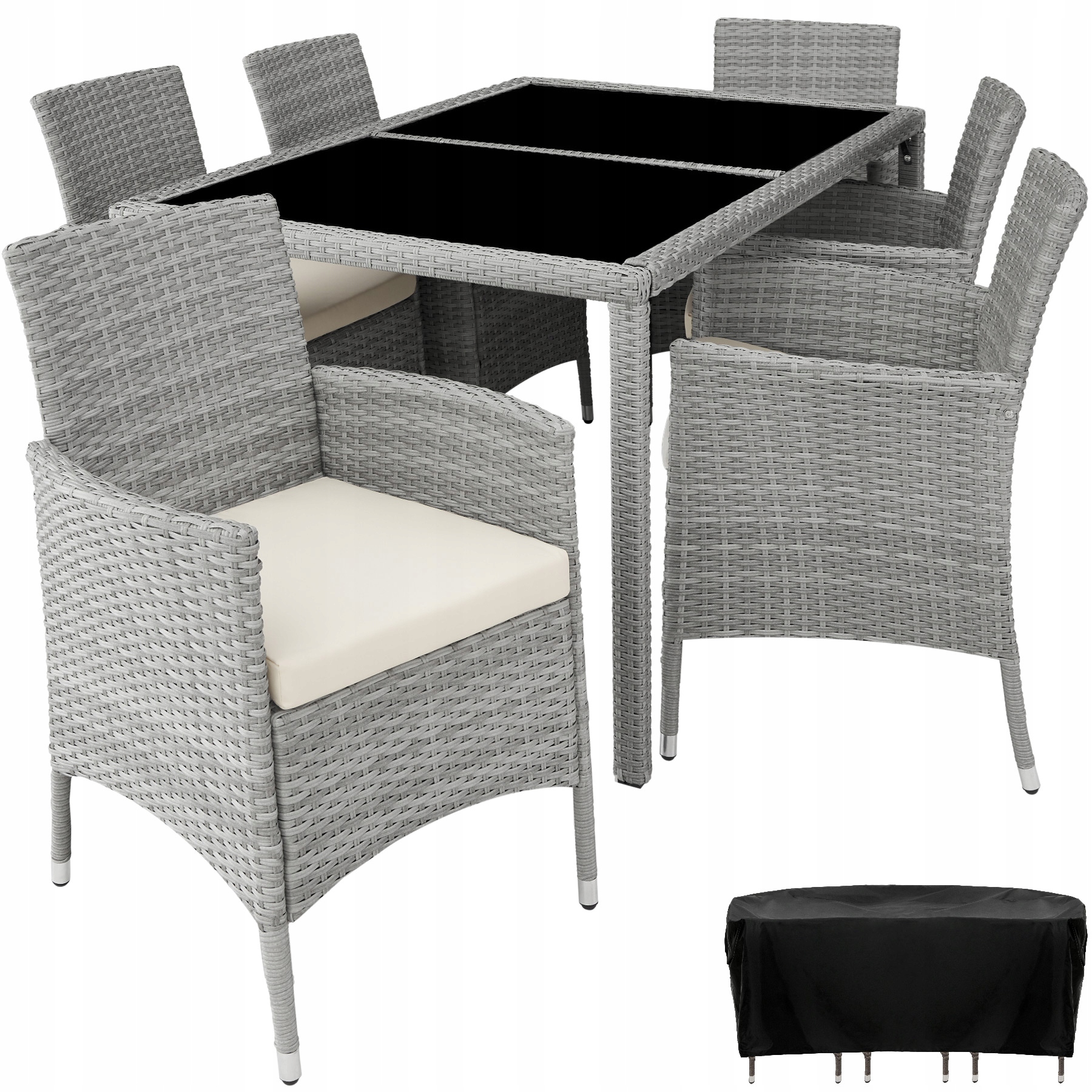 Сучасний стіл і стільці з сірого ротанга TecTake