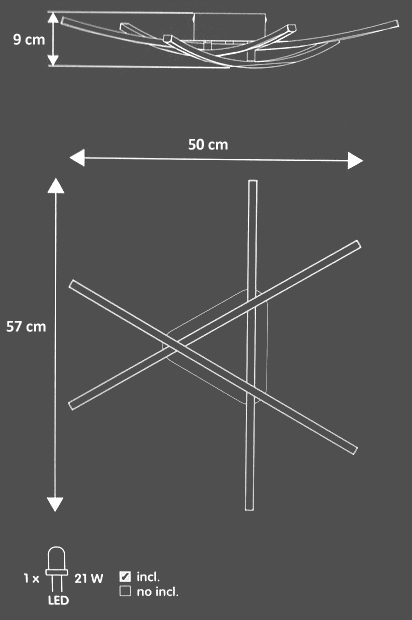 Он оснащен светодиодным источником света мощностью 21 Вт, который можно дополнить подходящими настенными светильниками или составить самостоятельный вид освещения.