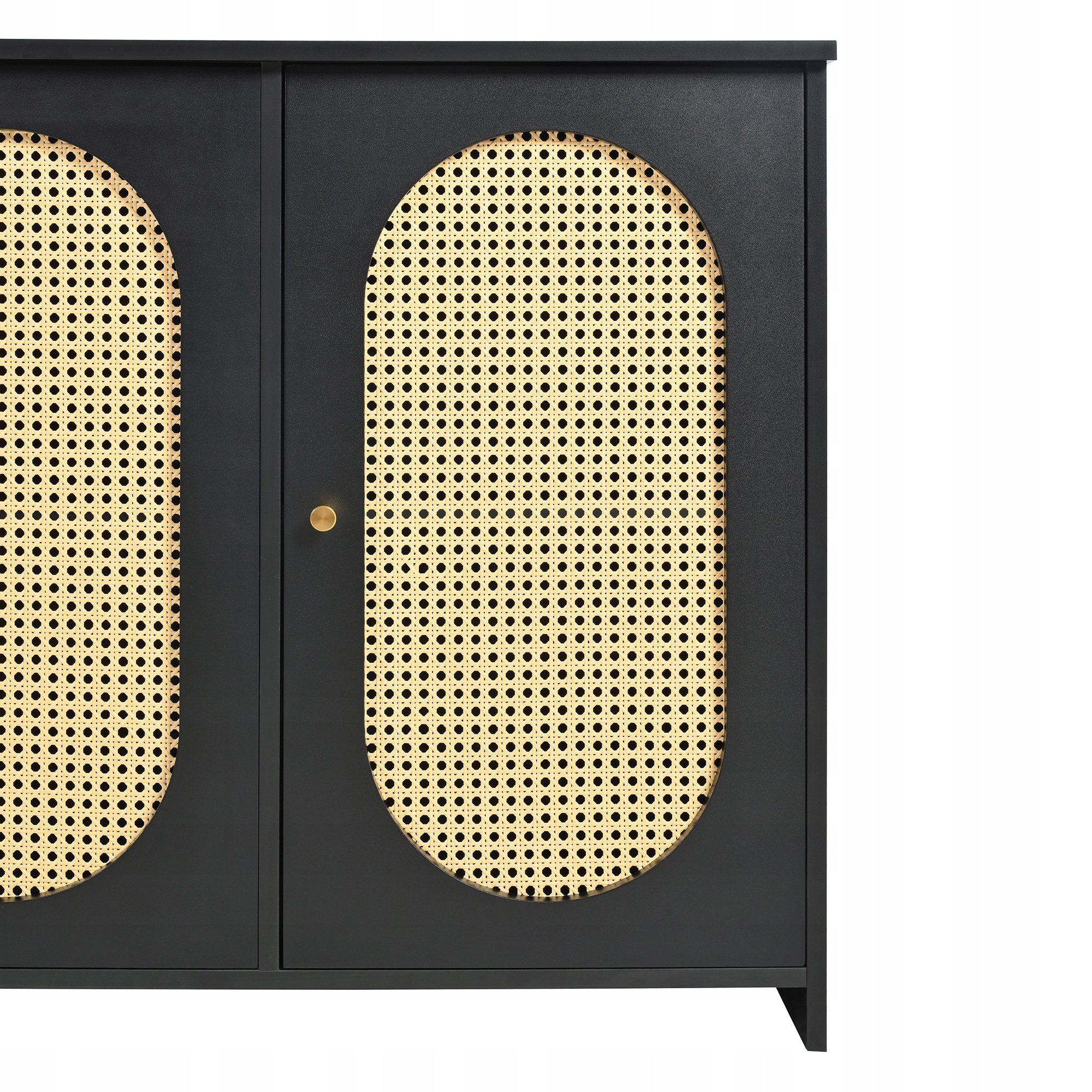 Современный, стильный буфет с 3 дверями, большим пространством для хранения, искусственными дверями ротанга и металлическими ручками, декоративная мебель для столовой, гостиная и кухня (черная) h1>