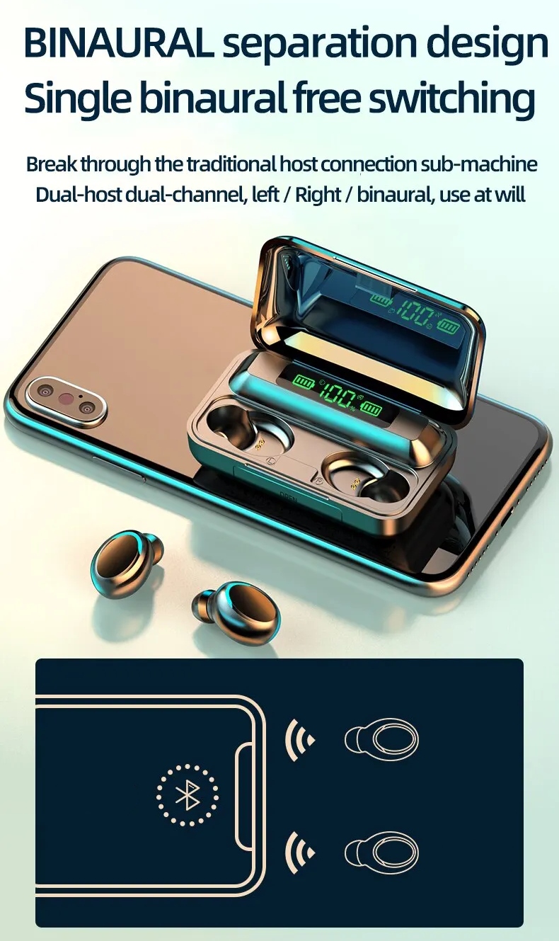 НАСТОЯЩИЕ БЕСПРОВОДНЫЕ НАУШНИКИ С POWER BANK TWS BTH-F9-5