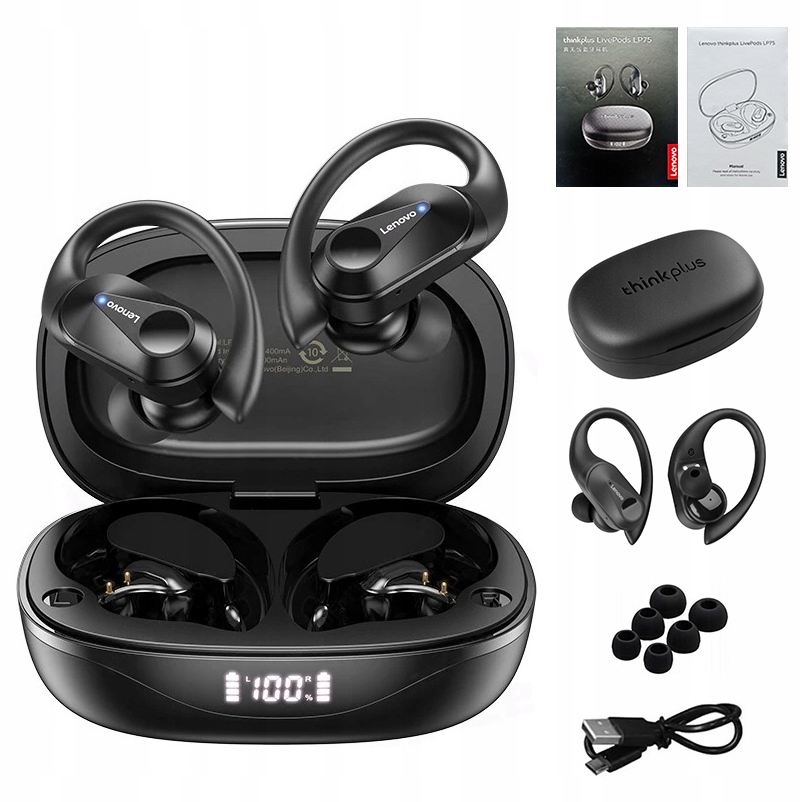 SŁUCHAWKI BEZPRZEWODOWE BLUETOOTH LENOVO LP75 WODOODPORNE SPORTOWE