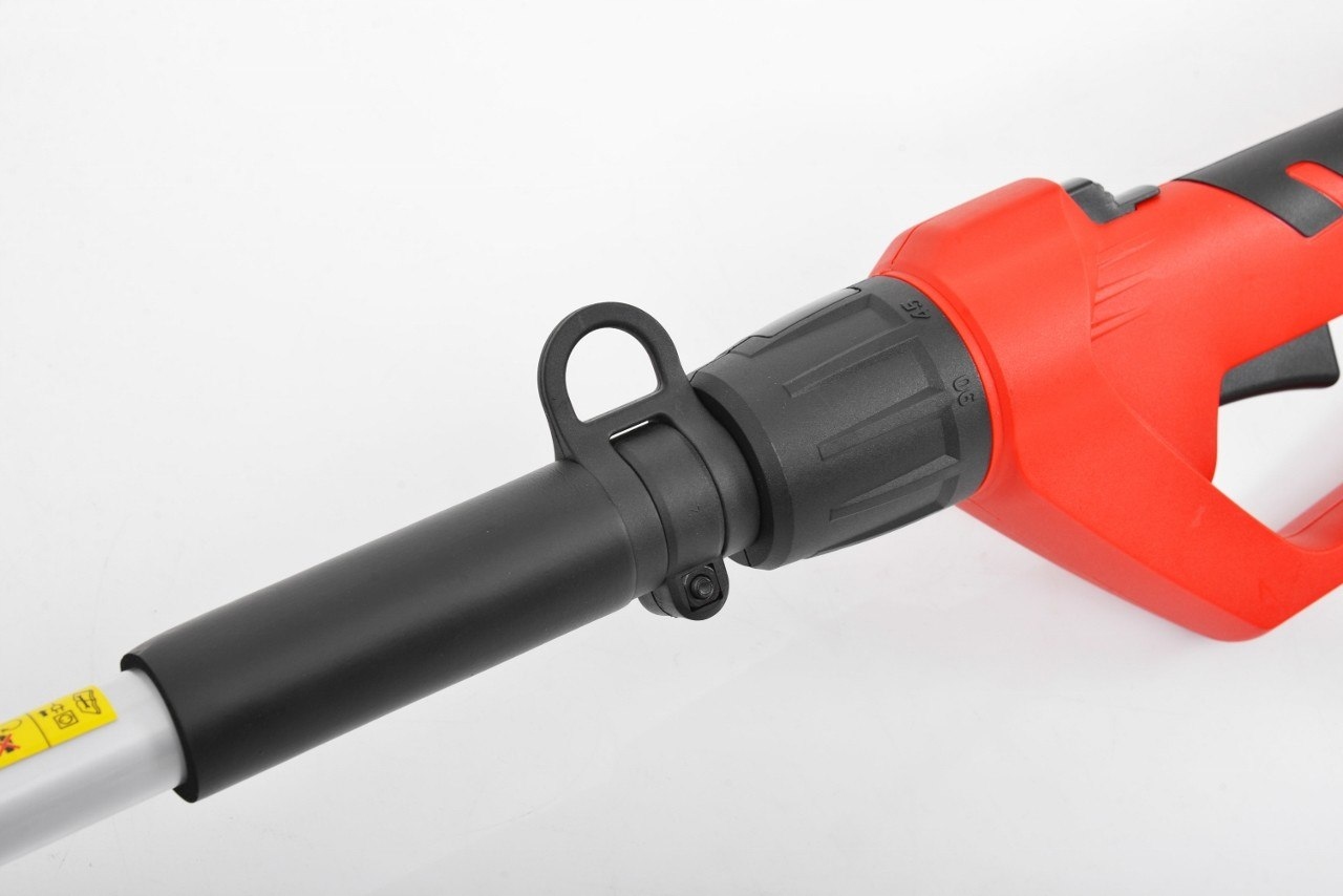 Это дает возможность использовать устройство как газонокосилку с шириной захвата 36 см, пилу с рабочей длиной длиной 23 см и секатором для живой изгороди с рабочей длиной 41 см. В комплект также входит удлинительный вал длиной 50 см.