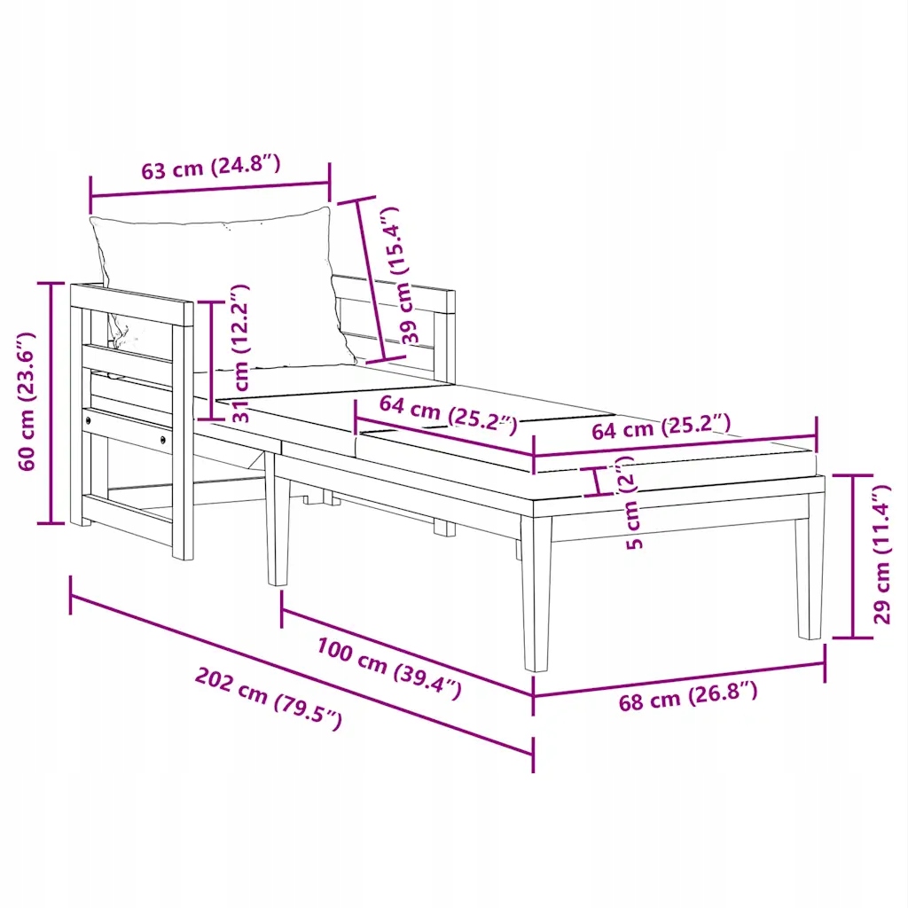 Solid Acacia Garden Deckchair, 202 x 68 x 60 см, темно -серый