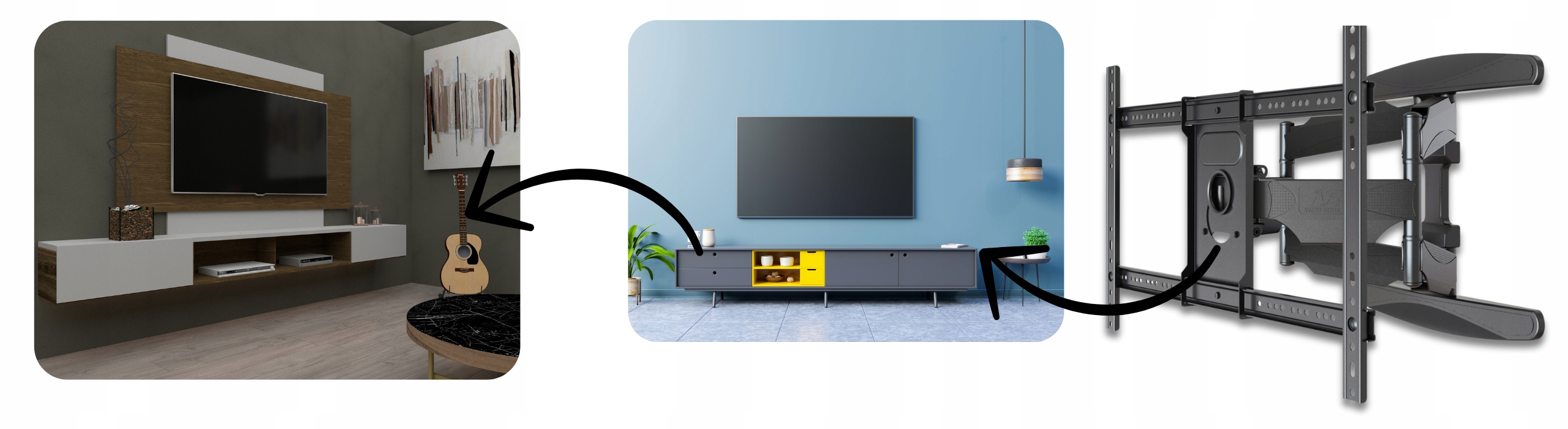 Благодаря двойное плечо и Жидкая регулировка угла у вас есть полная свобода настройки экрана в соответствии с вашими предпочтениями. Увеличение Comfort просмотр, избегание отражателей или неблагоприятных углов зрения - деликатного движения достаточно для склона и вращения телевизора было идеальным.