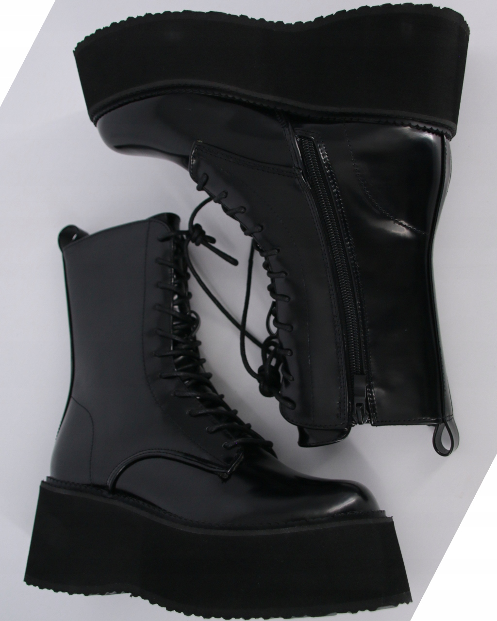 Сплошные ботинки на платформе украшают черную эко -кожаную молодежную обувь 41