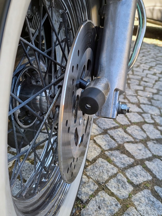 ✔ предотвращает вращение колеса , что означает, что вор не может покинуть мотоцикл, даже если ему удастся начать его.