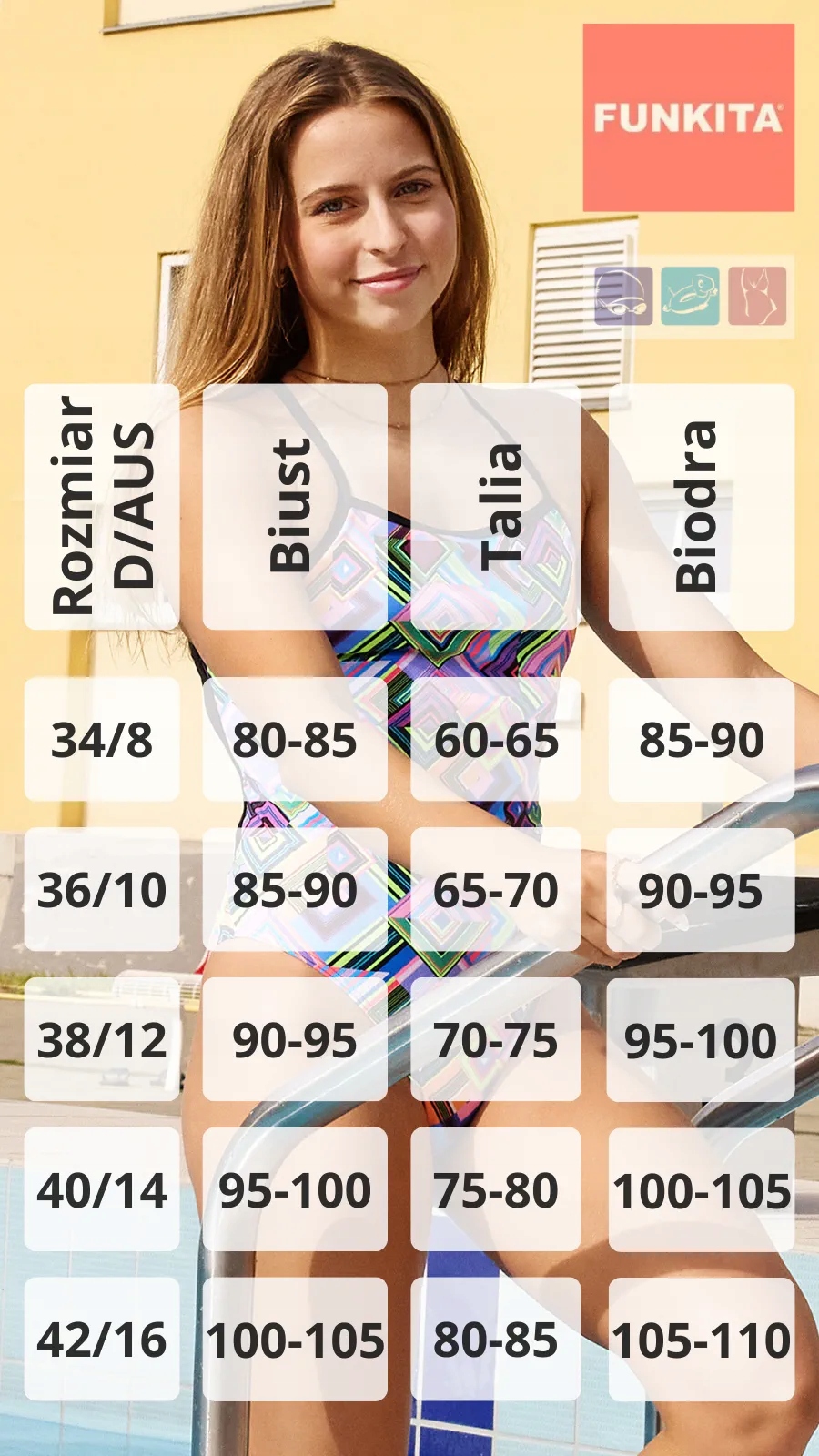 Определите свой идеальный размер купальника Funkita, используя таблицу размеров ниже: