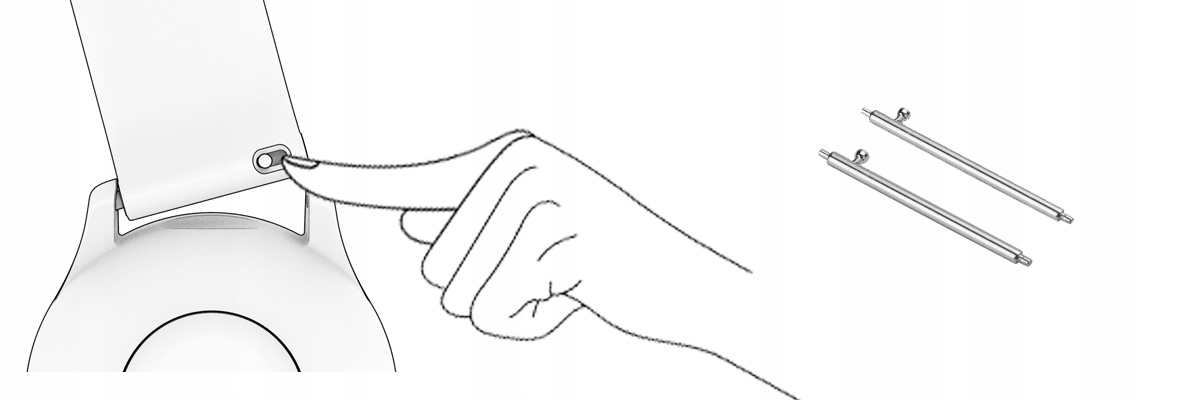 Чтобы удалить телескоп, поместите инструмент между ремнем и конвертом часов, как это показано на фото. Проведенно нажмите инструмент к телескопу в месте, указанном на фотографии. Затем, сохраняя акцент на телескопе, переместите инструмент из конверта.