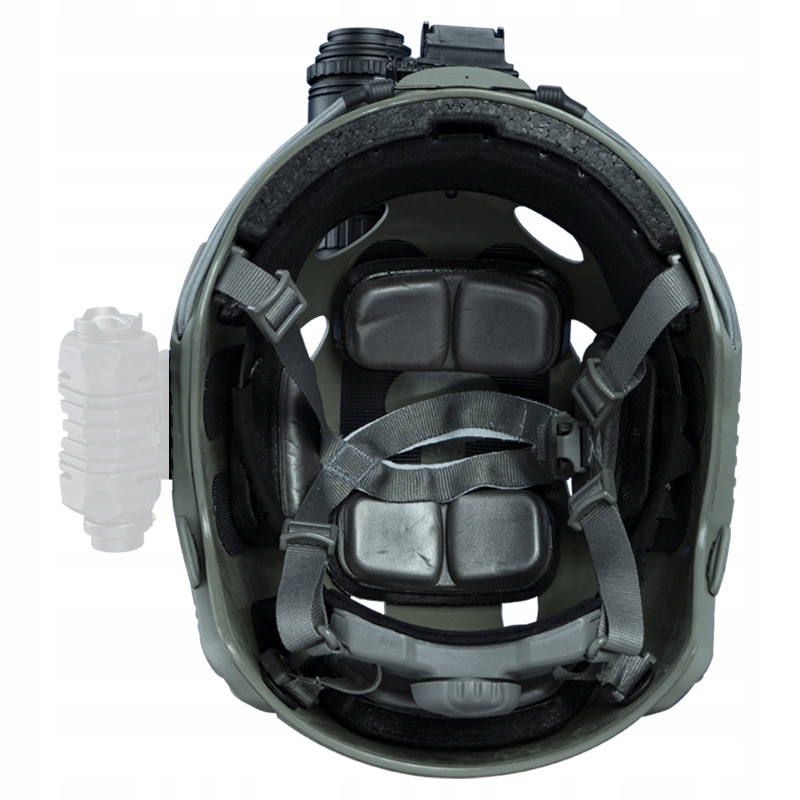 Особенности: 1. Реалистичный ремень и система крепления, 2. Прочная точка крепления для оптики ночного видения или камеры с антивибрационными резиновыми лентами, 3. Точки крепления аксессуаров на боковой стороне шлема, 4. Съемные мягкие вставки р>