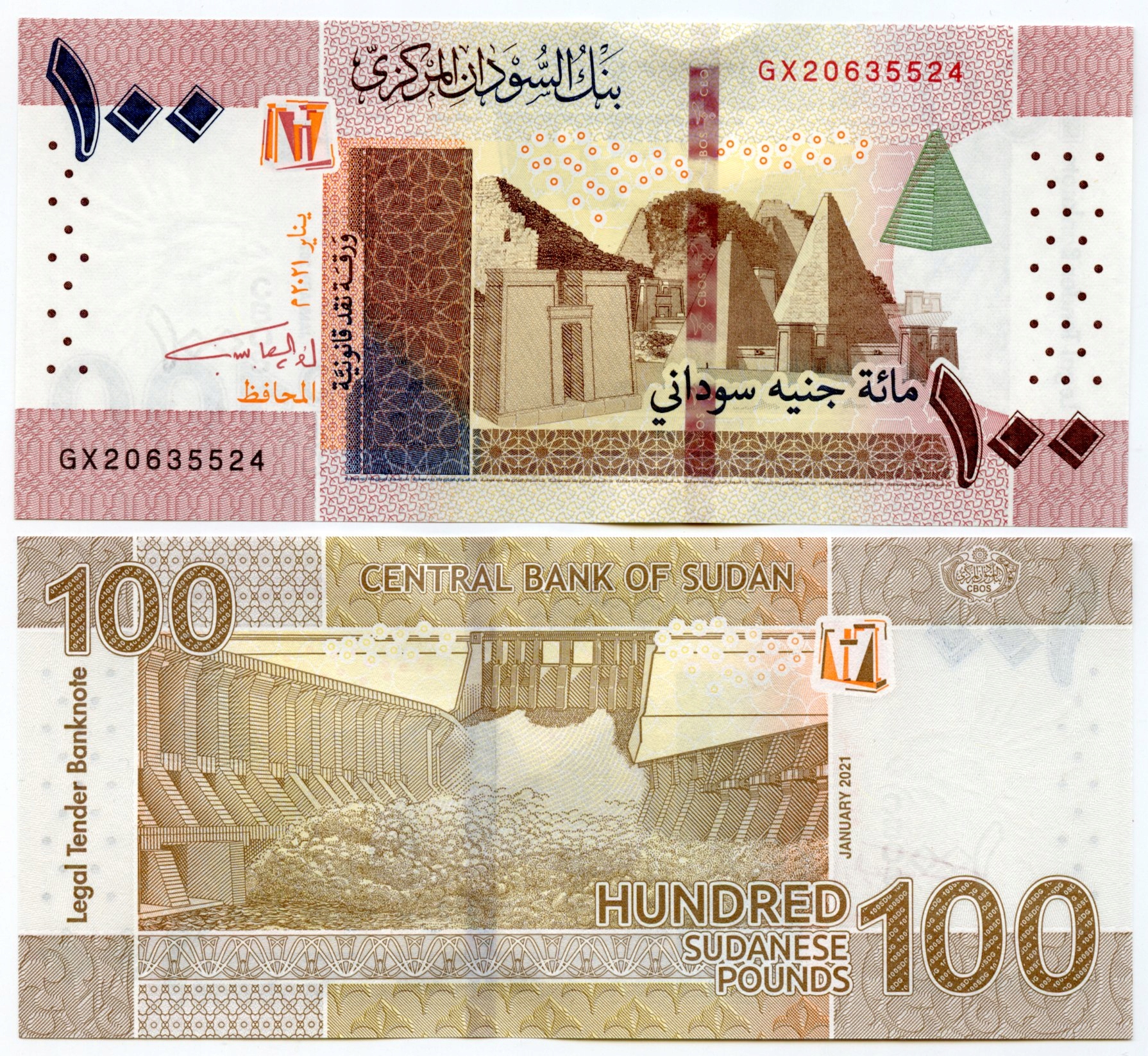 SUDAN 100 FUNTÓW 2021 P-W 77 UNC