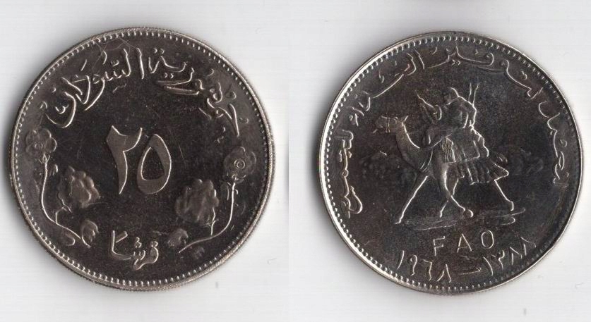 СУДАН 25 ПИАСТРОВ 1968 ГОДА ФАО