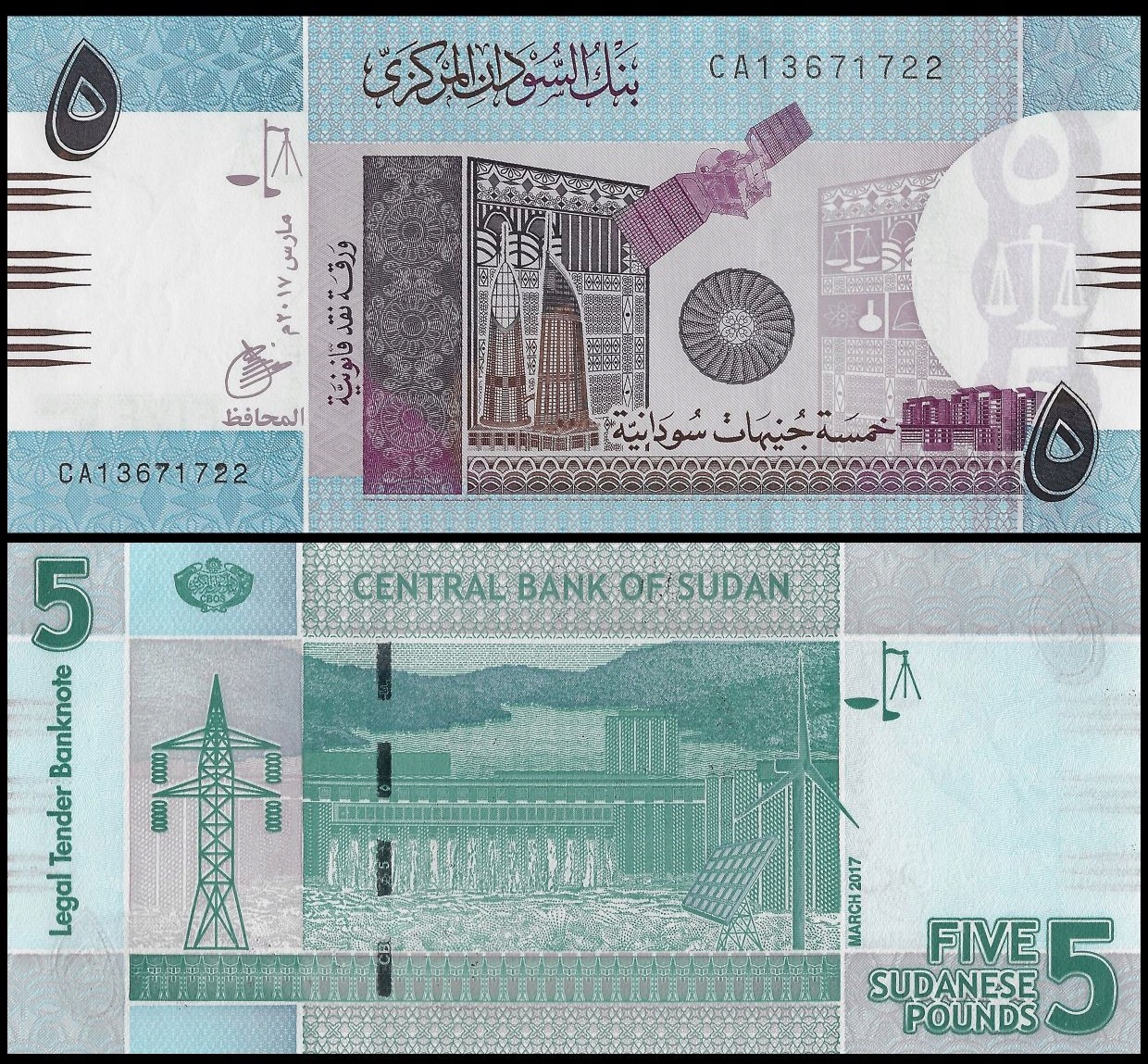 Судан 5 фунтов 2017 P-72d UNC